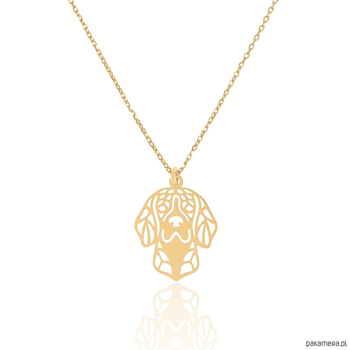 Naszyjnik srebrny pozłacany z ażurowym psem Beagle. Całość wykonana ze srebra 925 pokrytego 24 karatowym żółtym złotem.