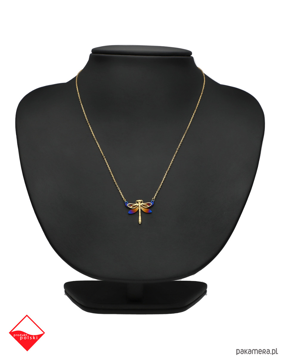 Naszyjnik srebrny pozłacany z tytanową ważką