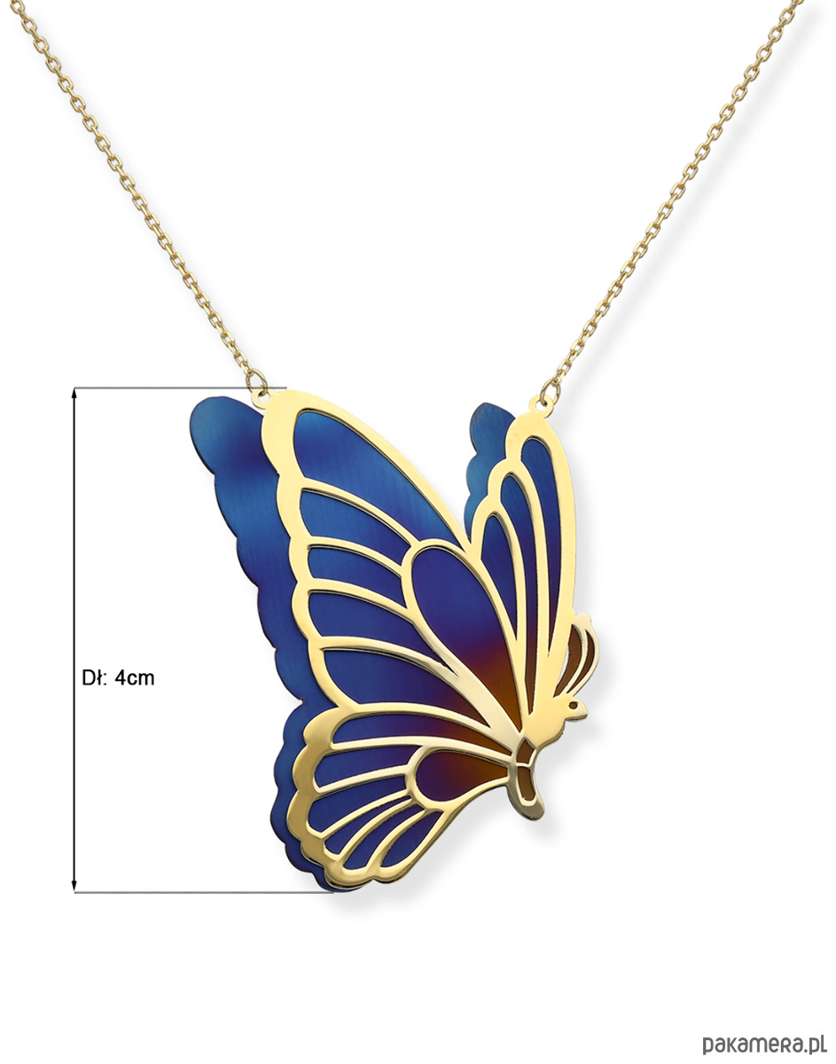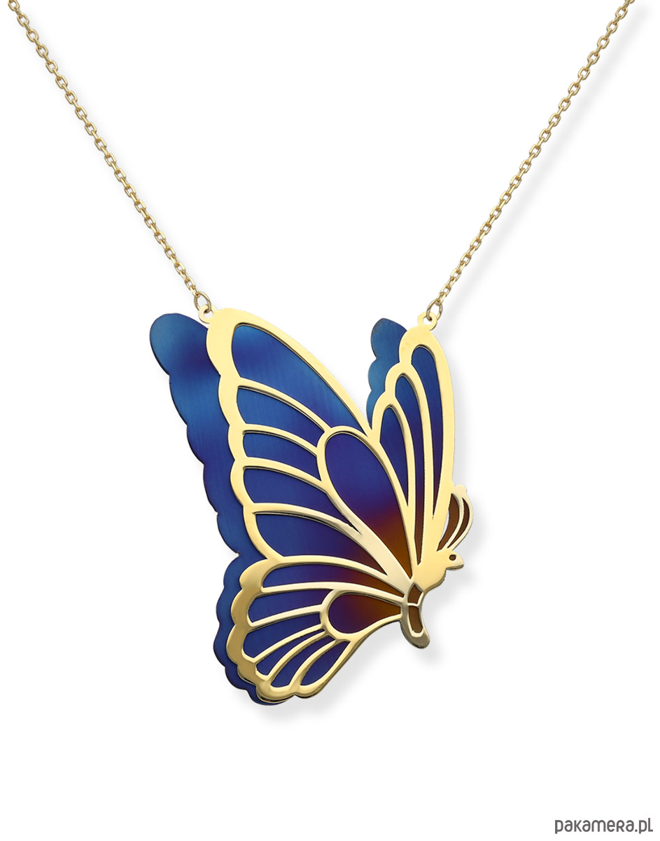 Naszyjnik srebrny pozłacany z tytanowym motylem