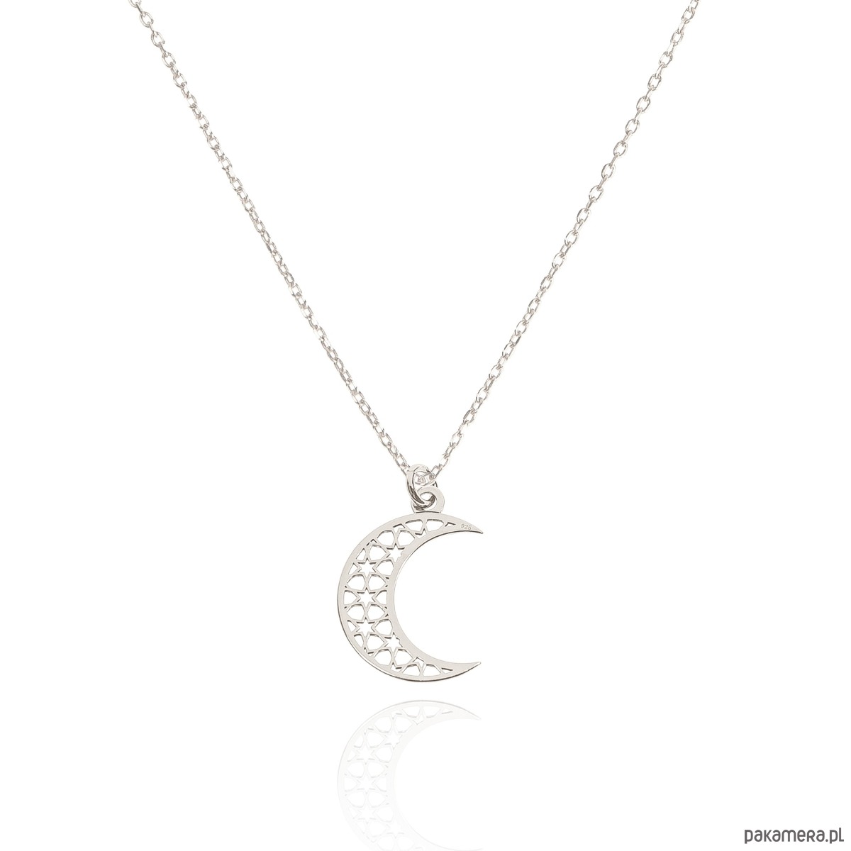 Naszyjnik srebrny z ażurowym księżycem. Całość wykonana ze srebra 925.