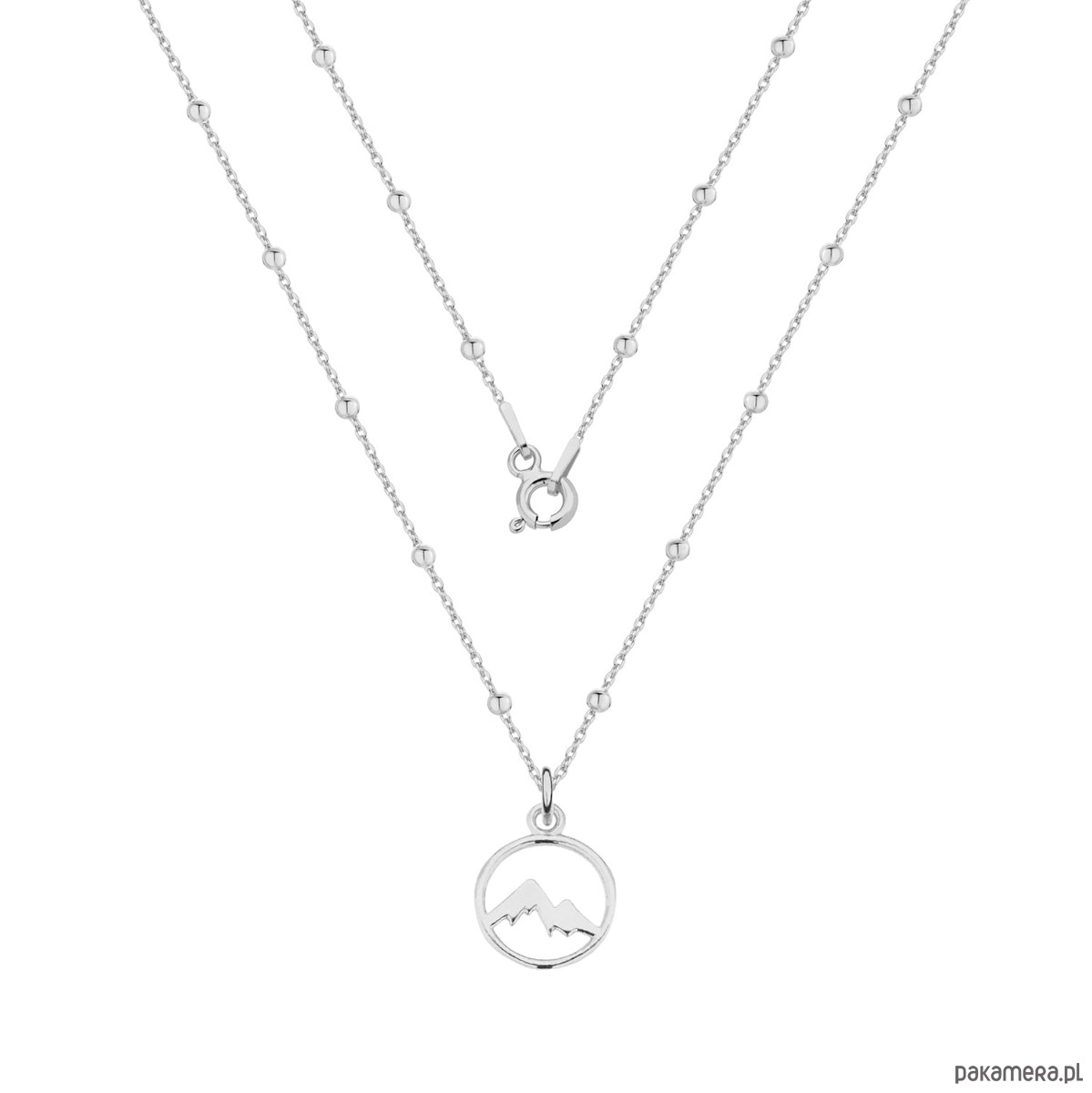 Subtelny naszyjnik ze srebra próby 925 .Naszyjnik składa się z łańcuszka i zawieszki w kształcie gór.Długość łańcuszka: 45 cmWielkość zawieszki: 11,3 mm.