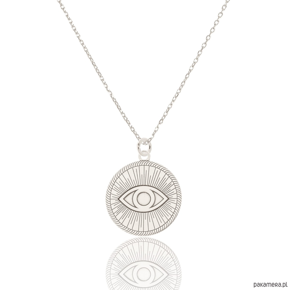 Naszyjnik srebrny z grawerowanym okiem. Całość wykonana ze srebra 925.
