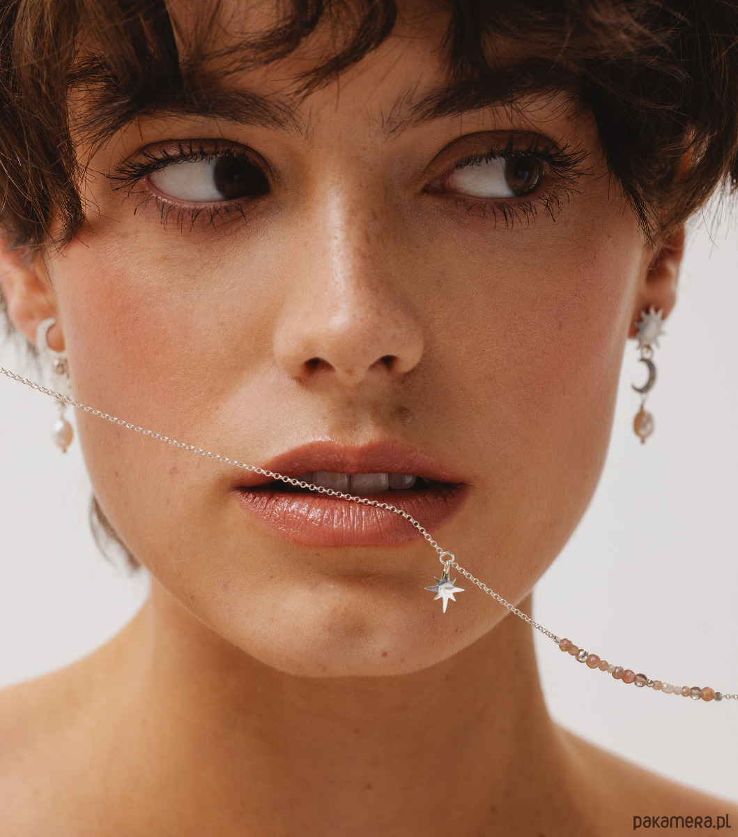 Delikatny, a jednocześnie pełen charakteru naszyjnik, który lubi przyciągać spojrzenia. Twój ulubiony zimowy talizman łączy się tu z naturalnymi kamieniami, tworząc szlachetny zestaw. Kamienie układamy ręcznie w unikatowy wzór inspirowany dniem — w ciepłych, świetlistych tonach — lub nocą, w odcieniach ciemnego, rozgwieżdżonego nieba.