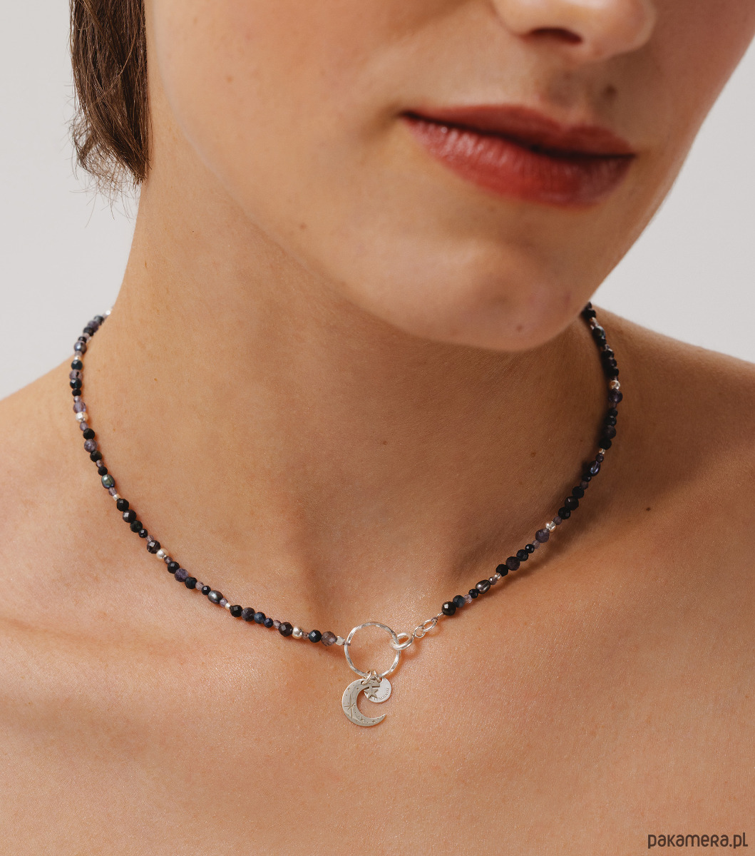 Spersonalizuj swój naszyjnik, wybierając symboliczną zawieszkę w kształcie księżyca lub słońca oraz swój ulubiony mix naturalnych kamieni.