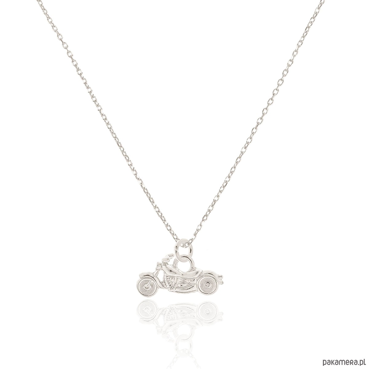 Naszyjnik srebrny z motorem typu Chopper. Całość wykonana ze srebra 925.