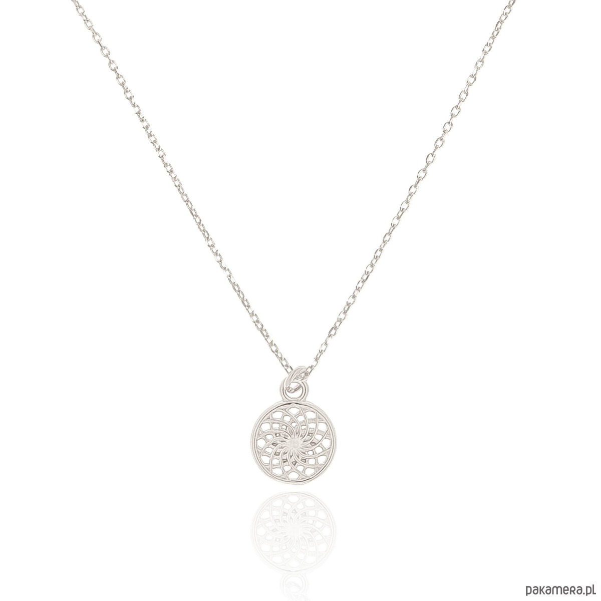 Naszyjnik srebrny z ozdobną rozetką. Całość wykonana ze srebra 925.