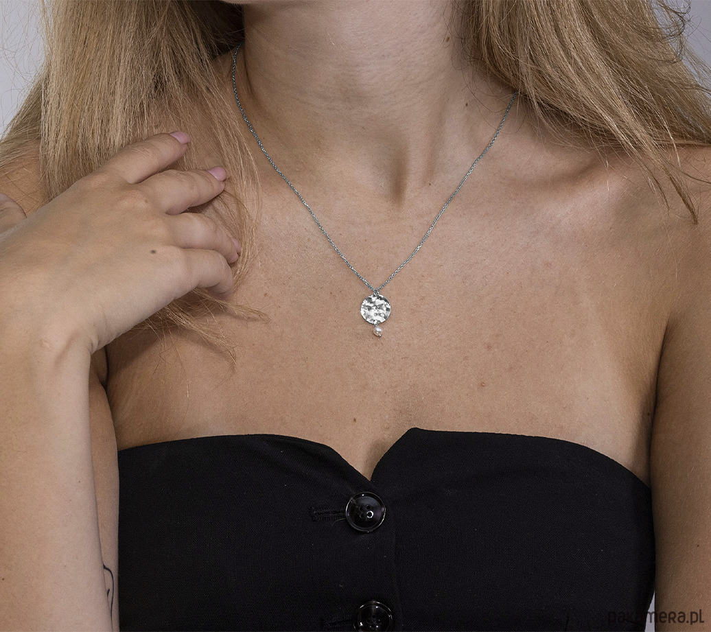 Ten naszyjnik jest doskonałym wyborem zarówno na codzienne noszenie, jak i na specjalne okazje. Centralnym punktem naszyjnika jest piękna perła, która emanuje naturalnym blaskiem i elegancją. Jej delikatny kształt i wyjątkowy połysk przyciągają uwagę, dodając całości niepowtarzalnego uroku.
