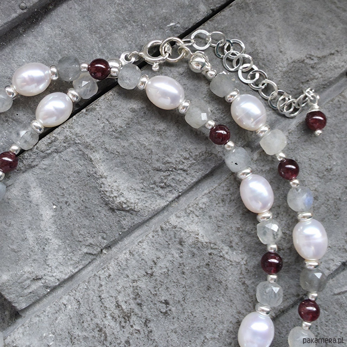 - Rodzaj kamienia: granat, labradoryt, perła
