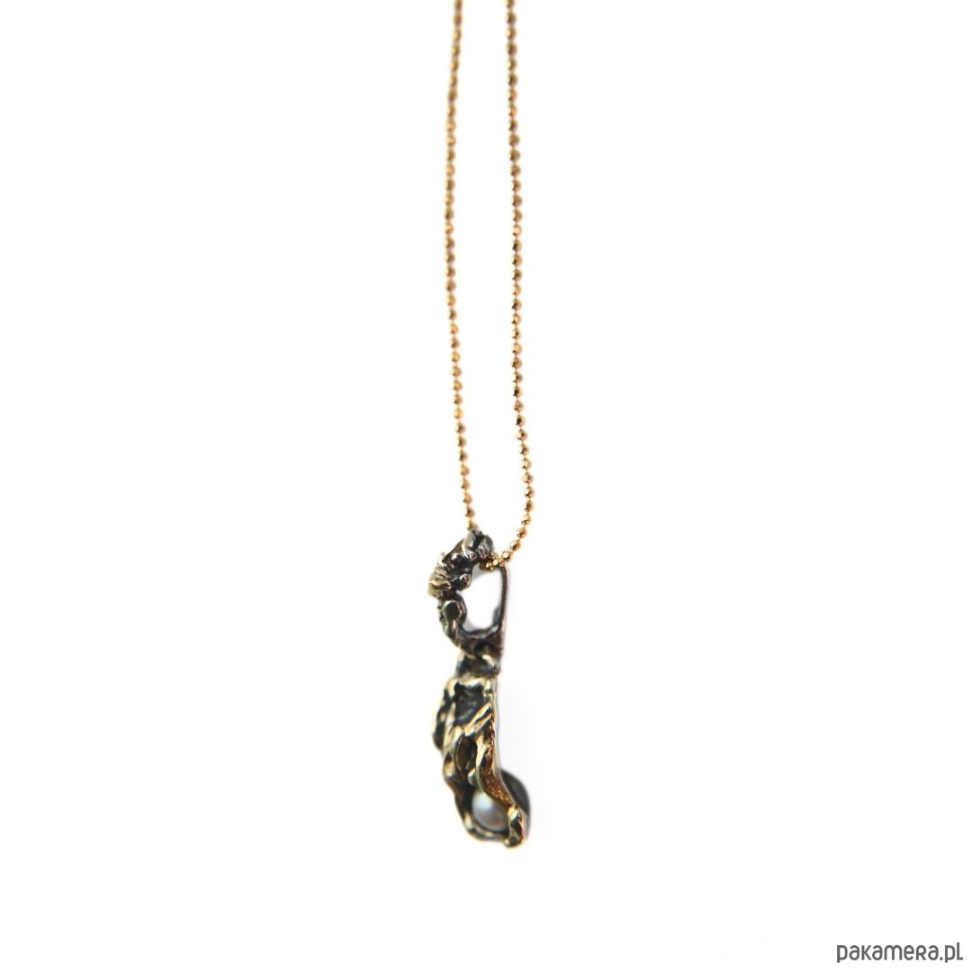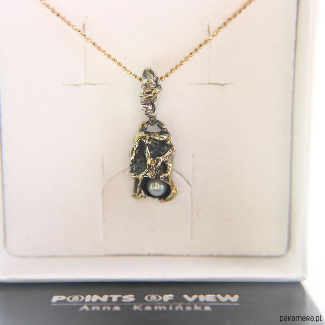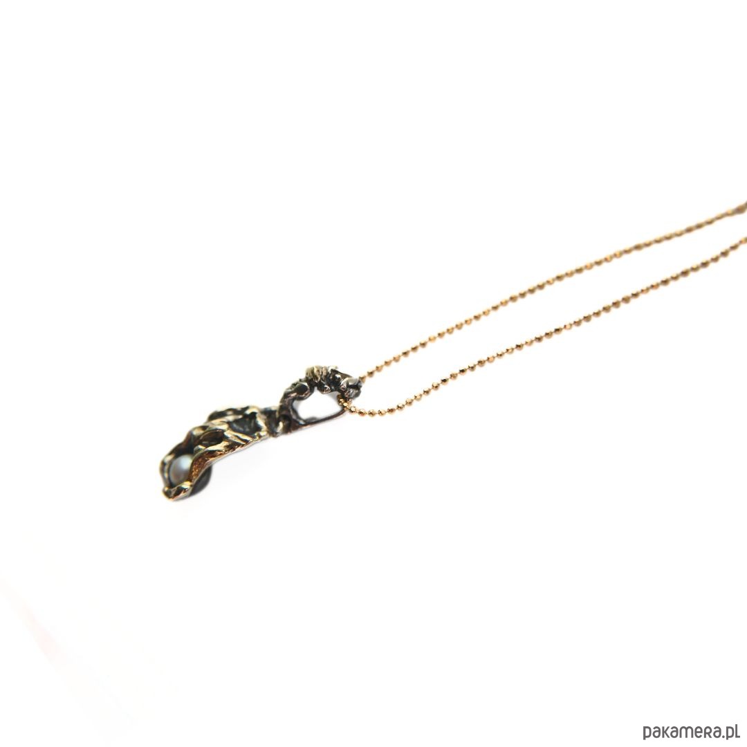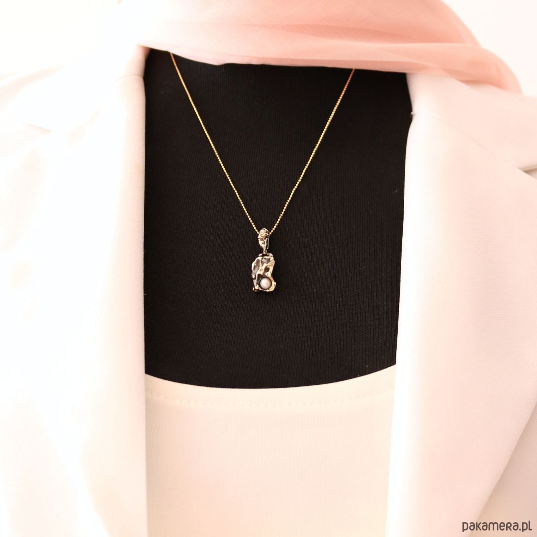 Naszyjnik srebrny, złoto-czarny Ślad z perłą