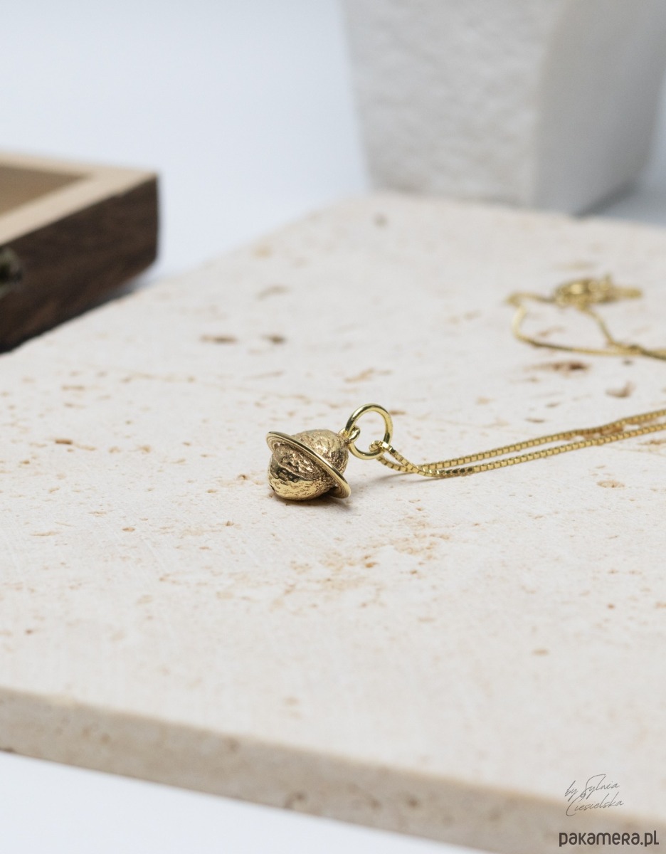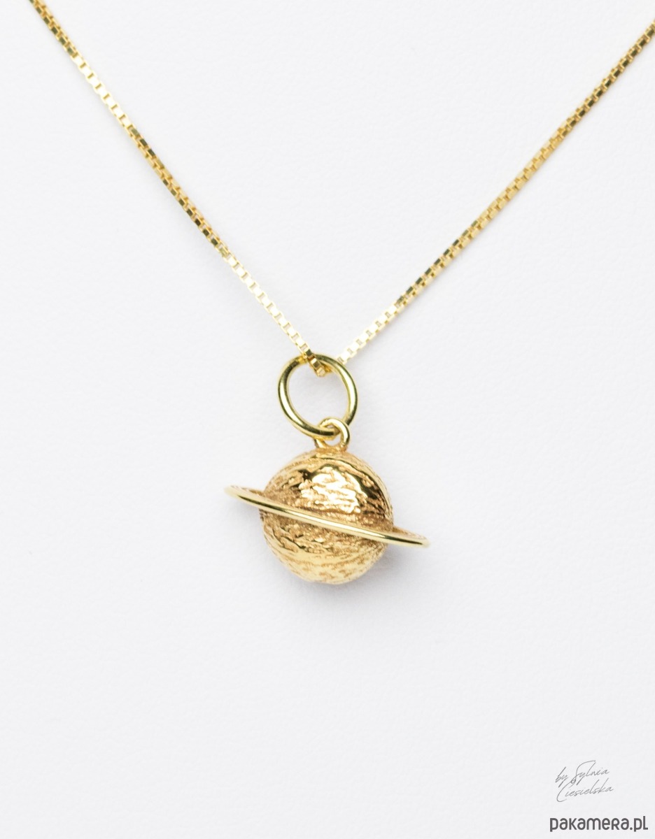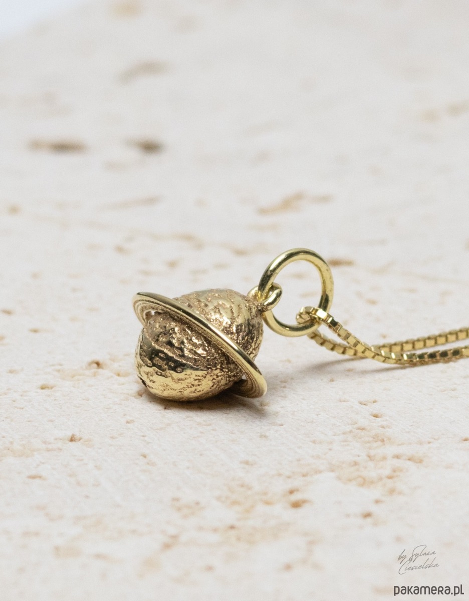 Naszyjnik srebrny925 pokryty 14k złotem z zawieszką planeta Saturn