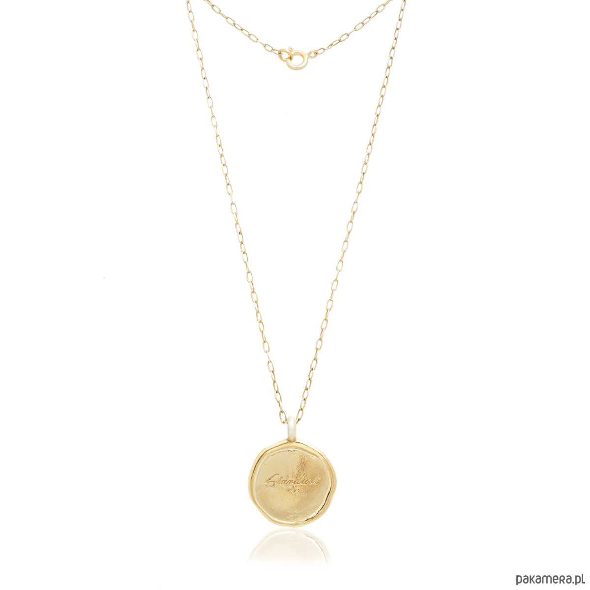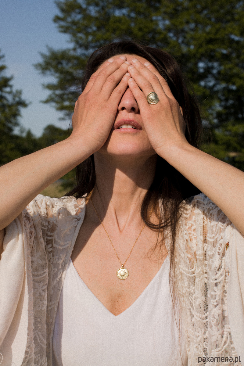 Naszyjnik, medalion z polerowanego srebra 925. pokrytego złotem. Z motywem słońca - symbolem życia i radości
