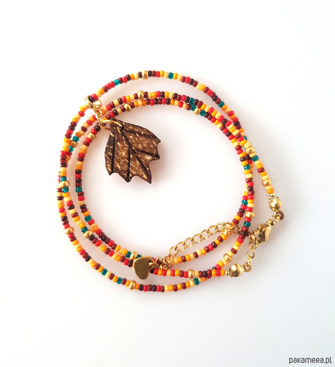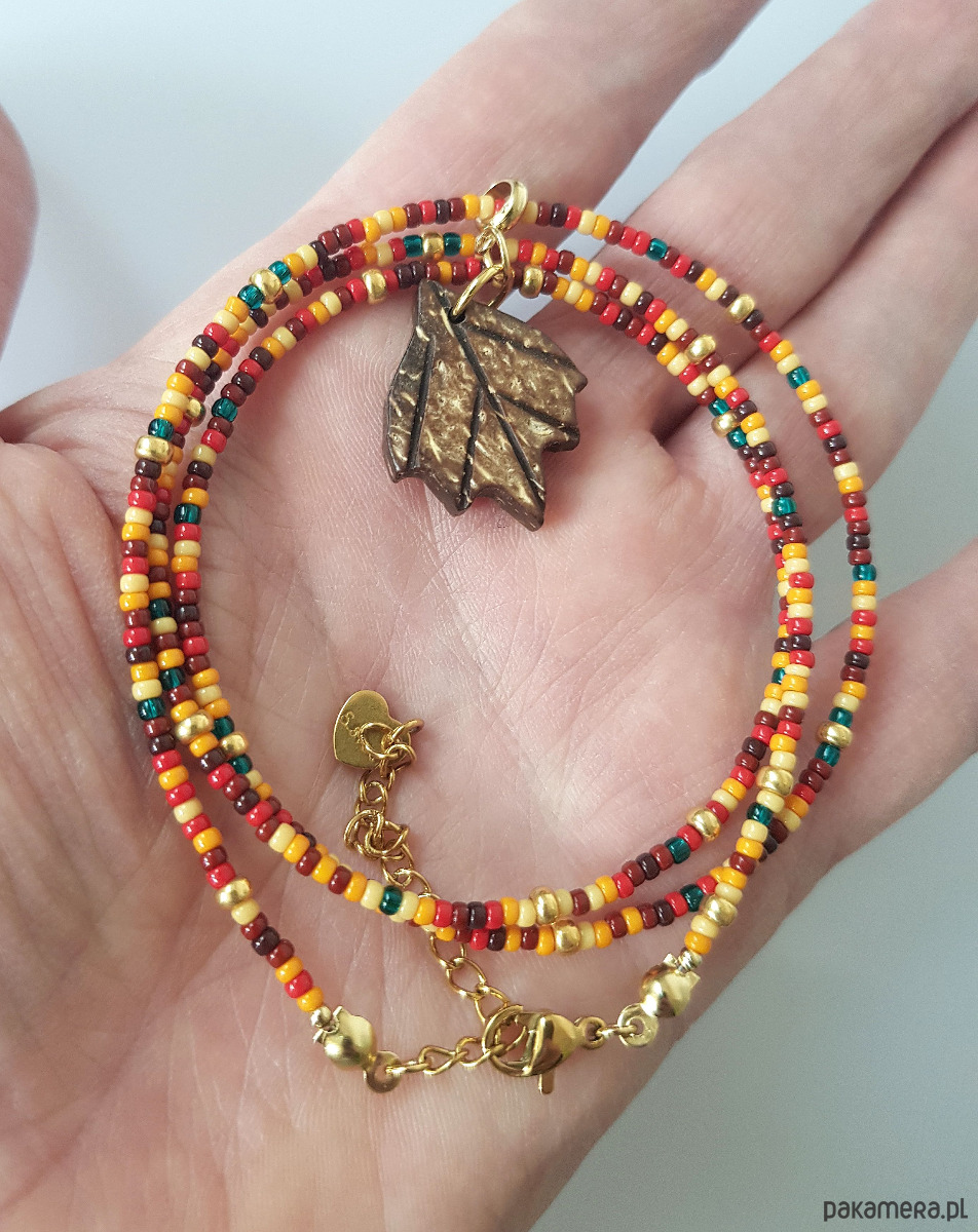Skomponowany z wysokiej jakości japońskich koralików Miyuki w jesiennych kolorach.