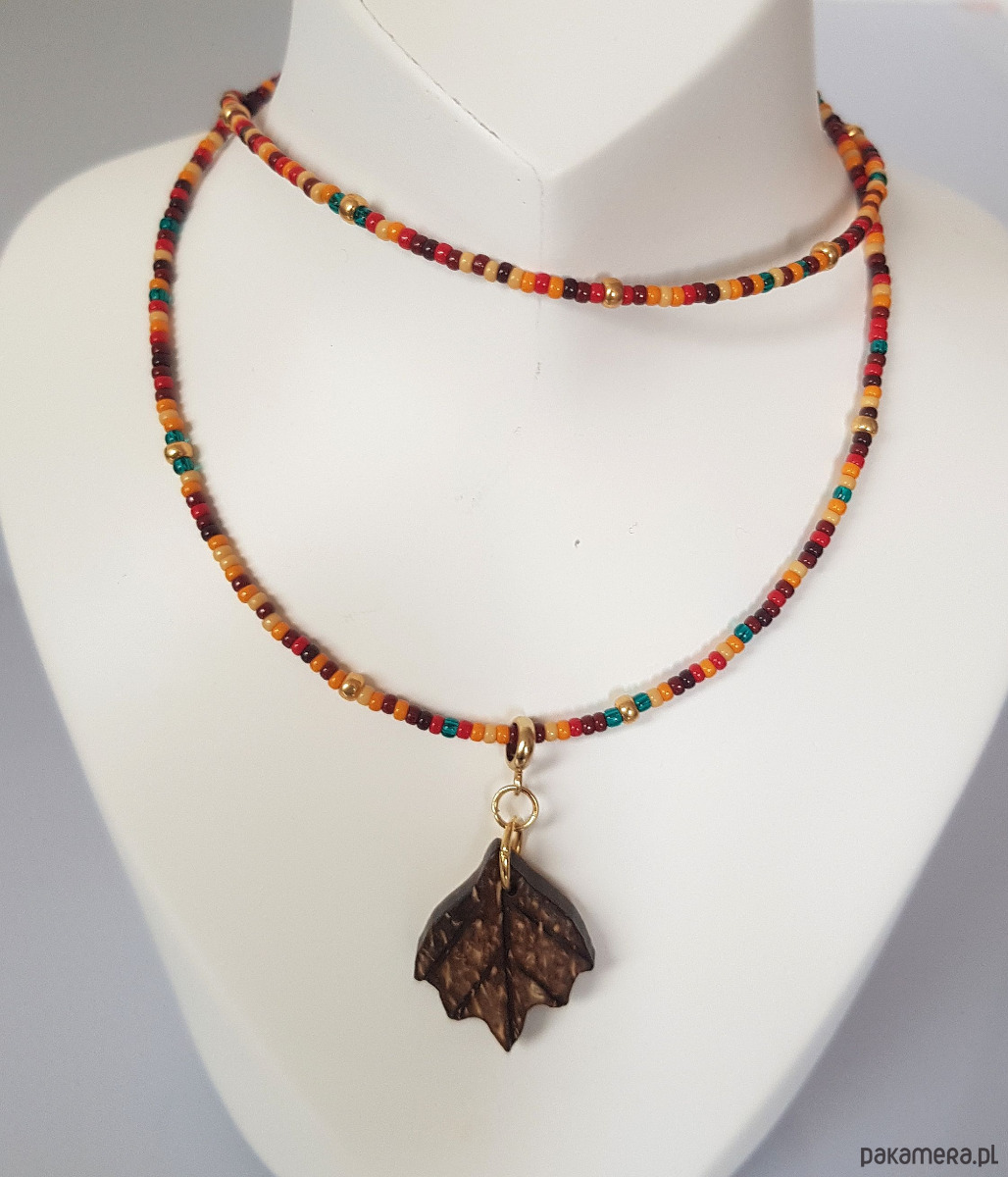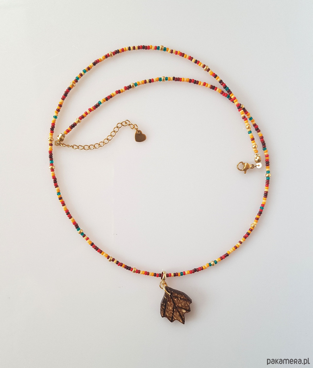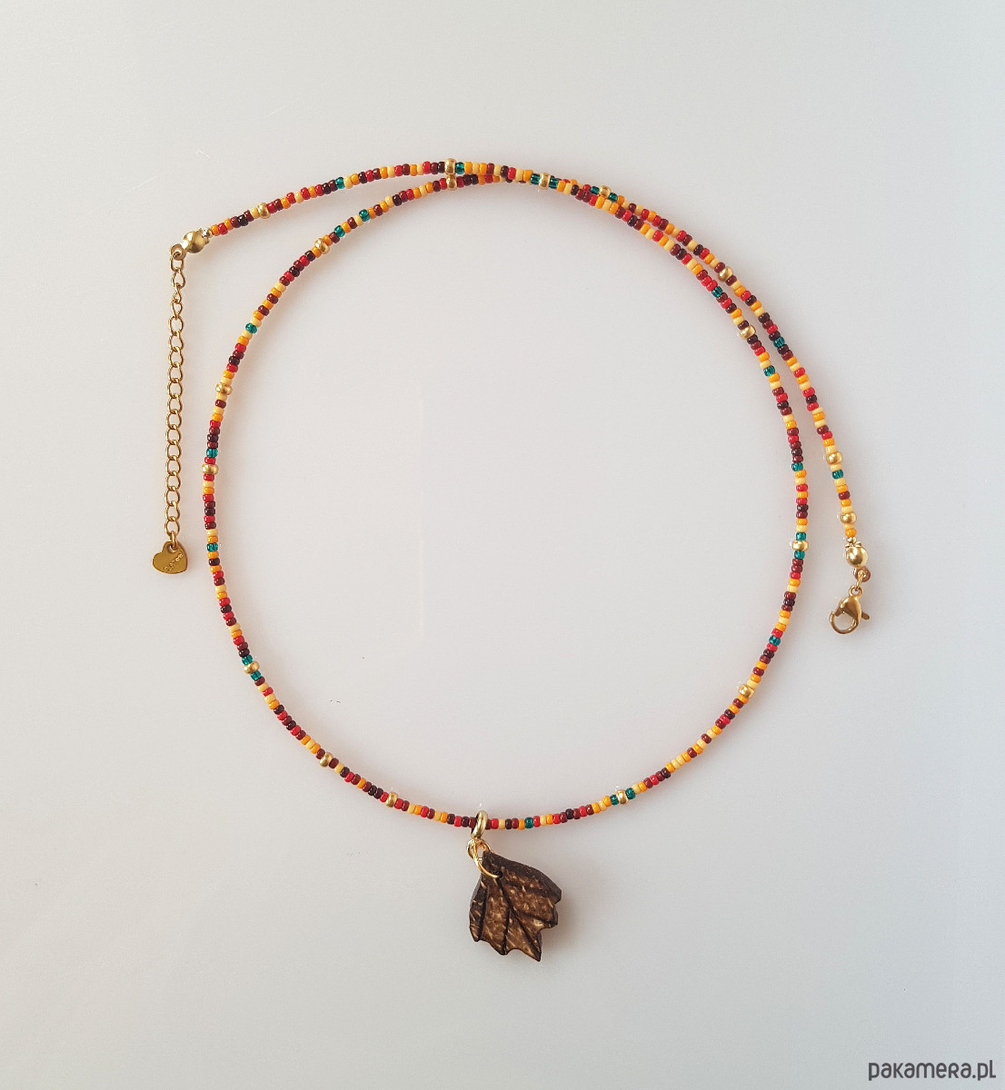 Wesoły, kolorowy, leciutki naszyjnik z listkiem.