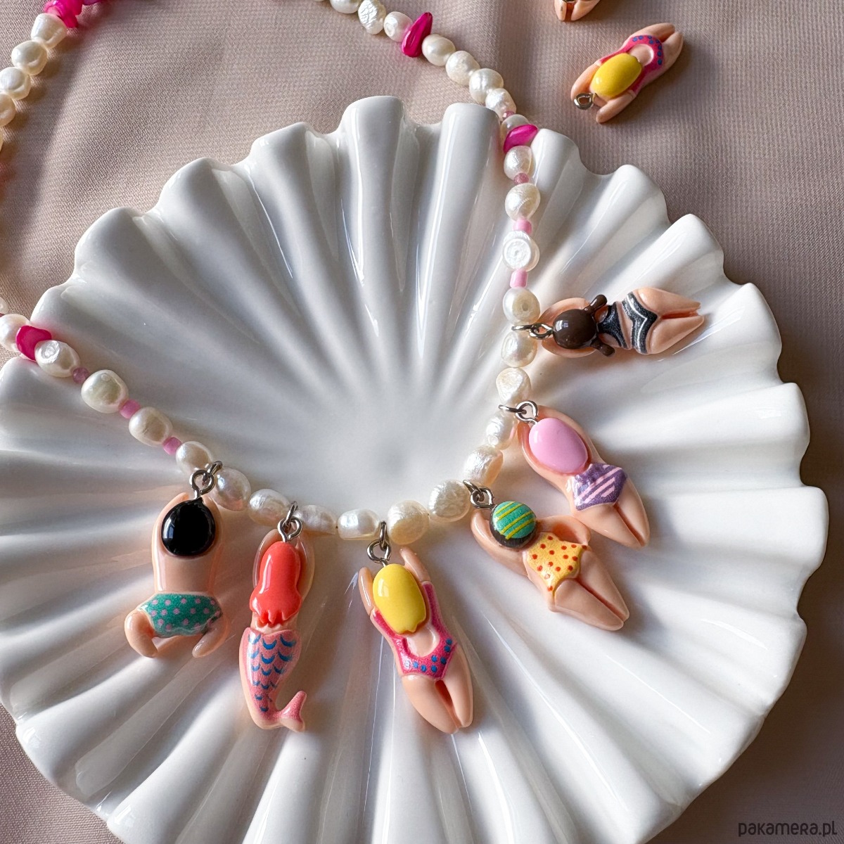 Naszyjnik SWIMMING POOL z naturalnych pereł z letnimi kolorowymi charmsami