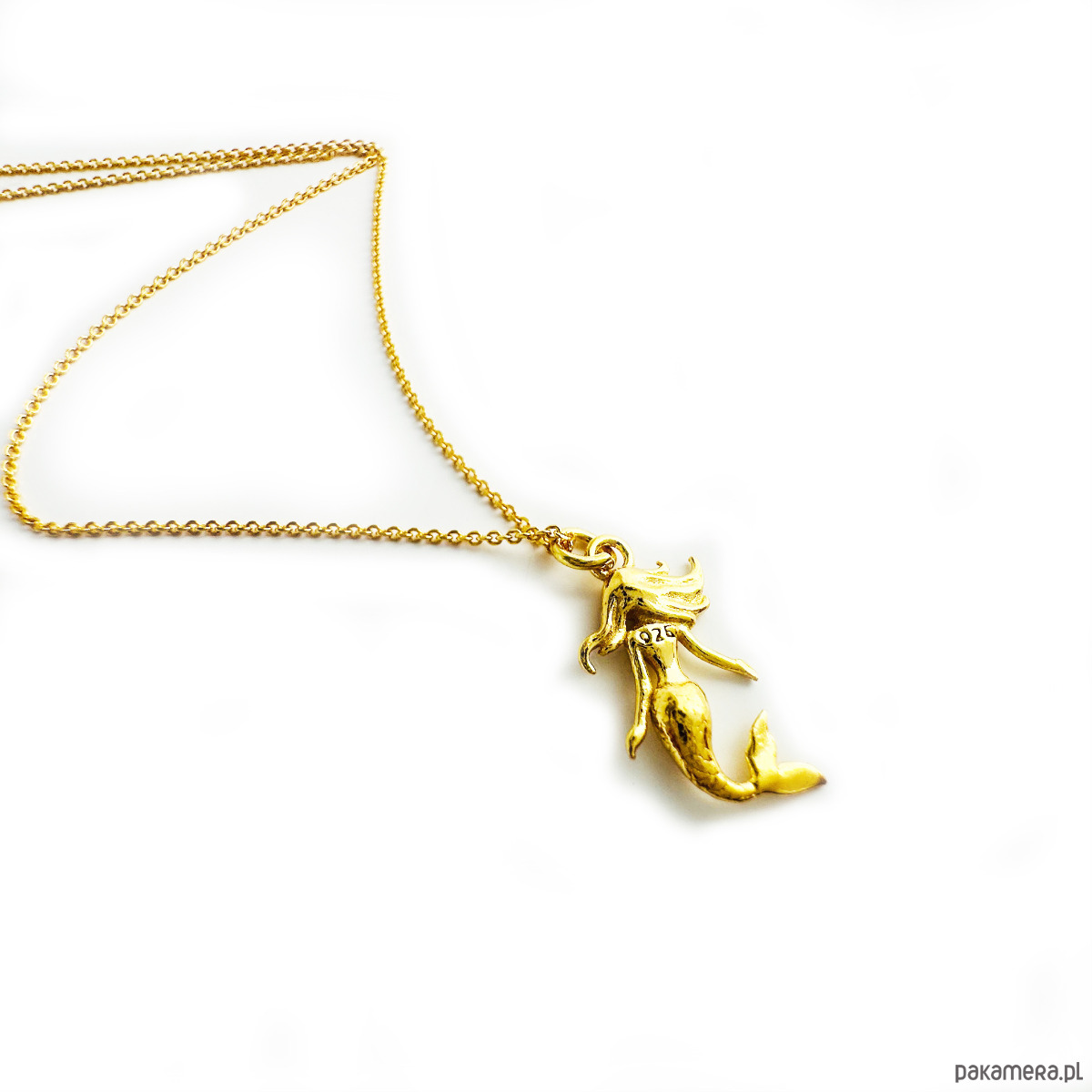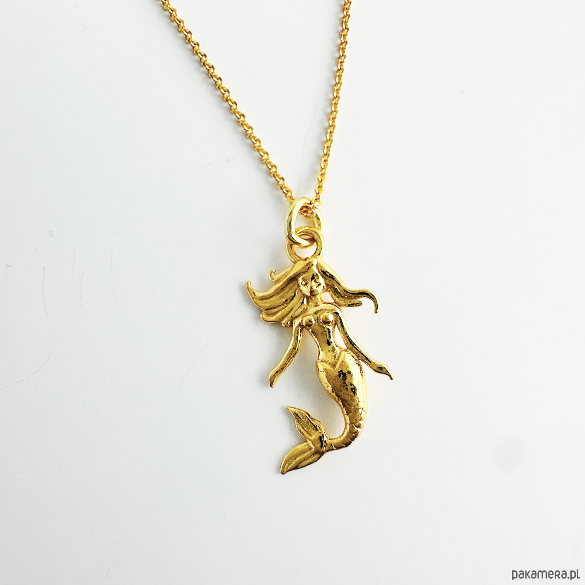 Naszyjnik wykonany jest ze srebra próby 925 i pokryty warstwą 24-karatowego złota, co nadaje mu ciepły, szlachetny odcień. Zawieszka w formie syrenki symbolizuje wolność, intuicję i wewnętrzną siłę – to talizman dla tych, które nie boją się podążać za głosem serca.