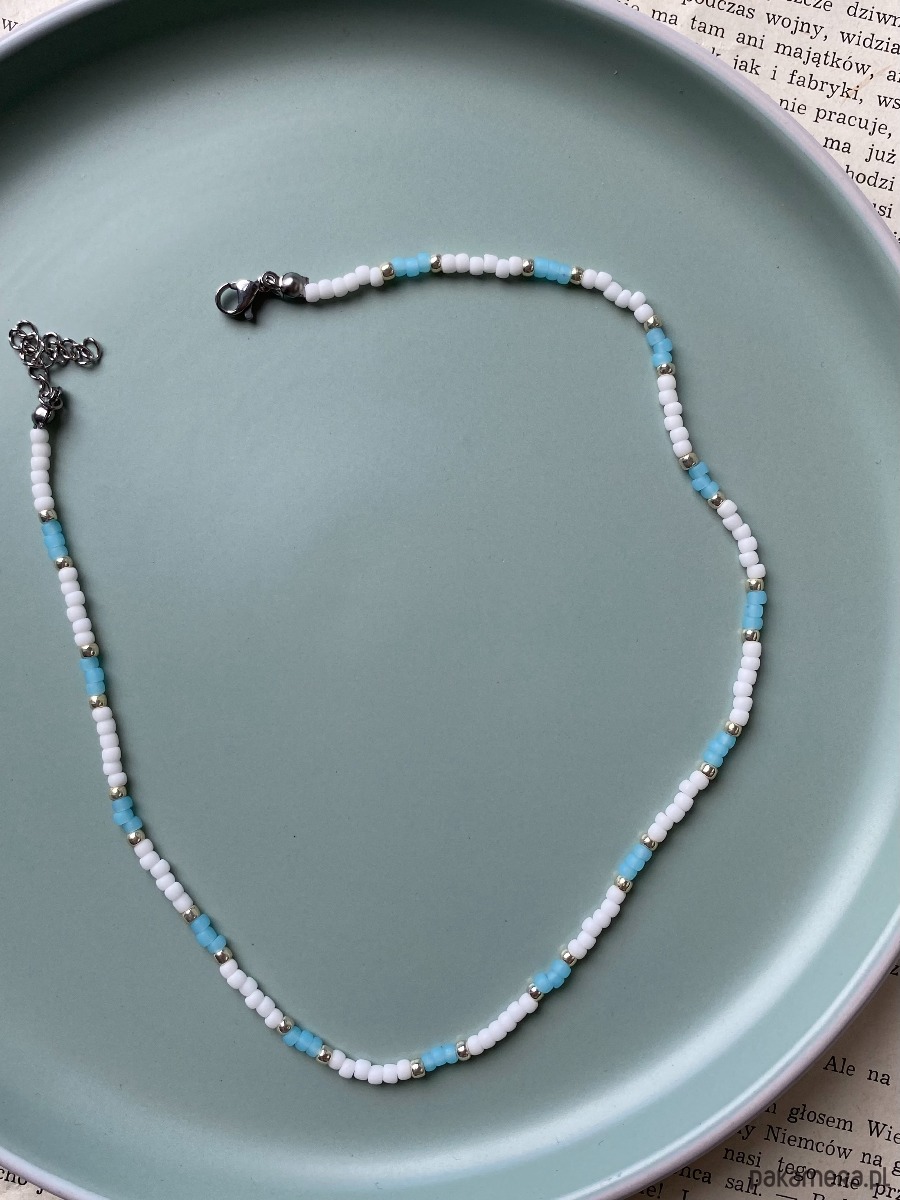 Naszyjnik wykonany ze szklanych koralików TOHO oraz stali chirurgicznej.