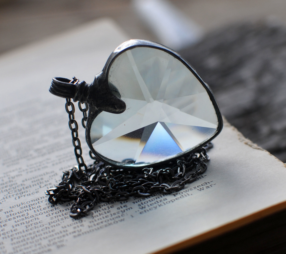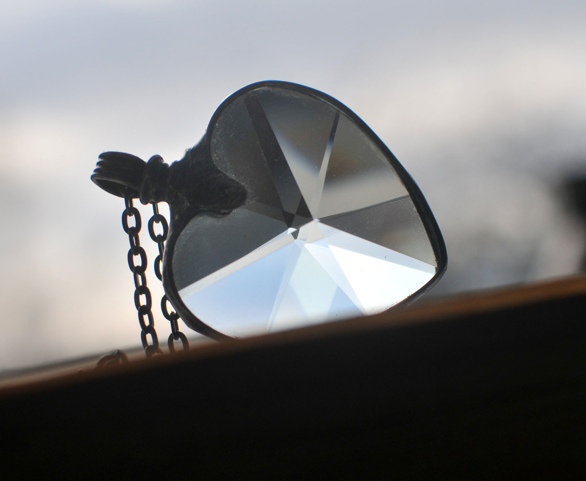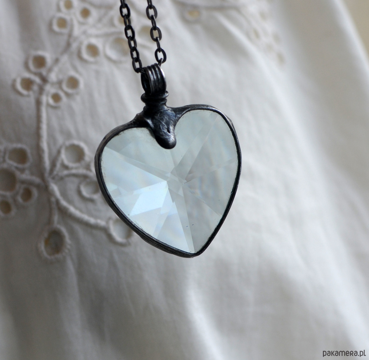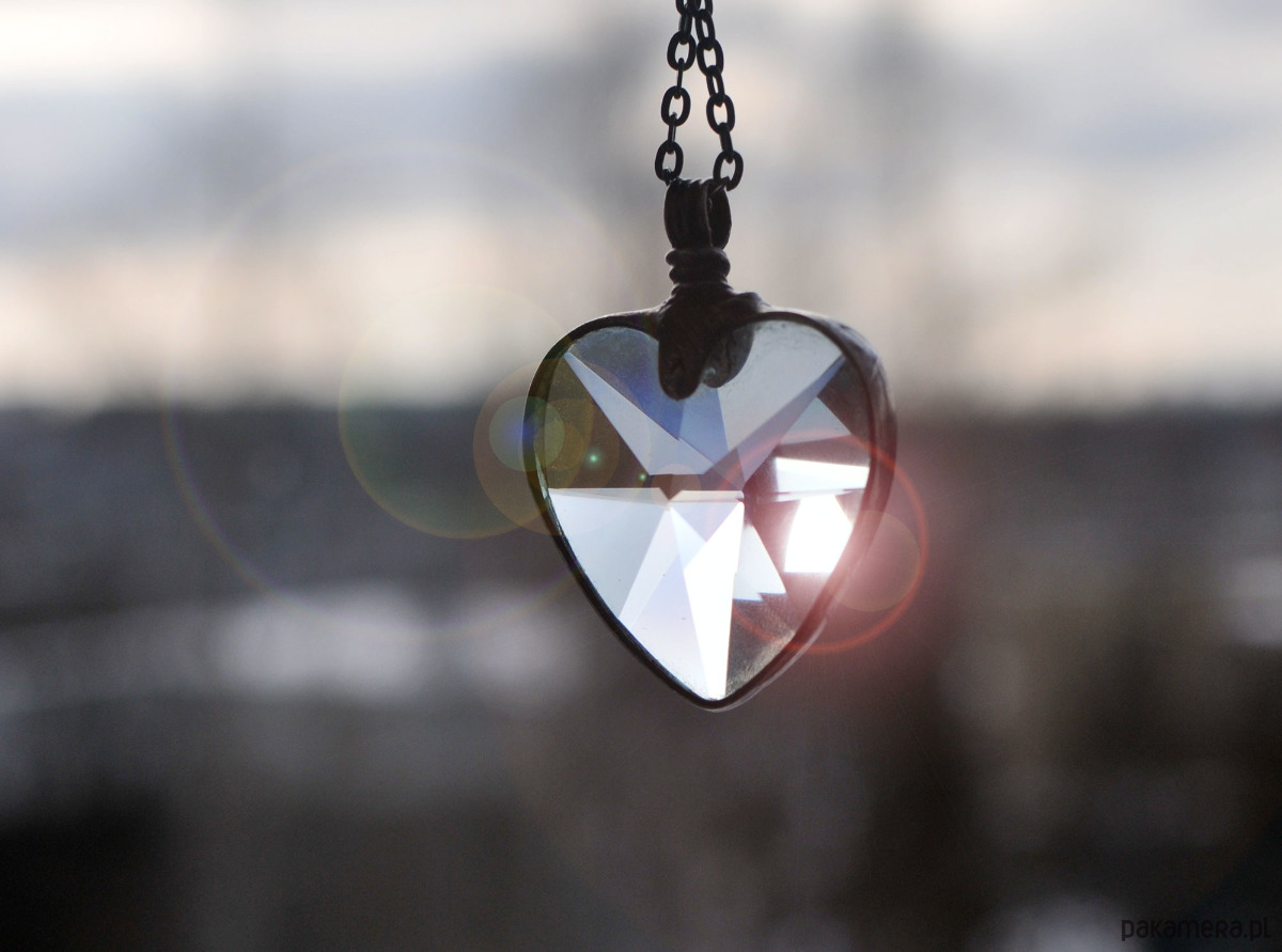 Cudowny, odbijający promienie światła, wisiorek w kształcie serca.