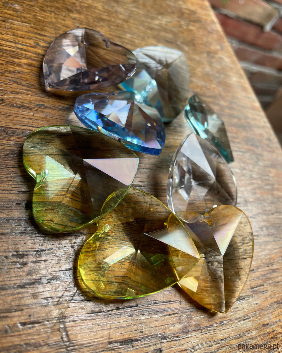 Cudowny, odbijający promienie światła, wisiorek w kształcie serca.