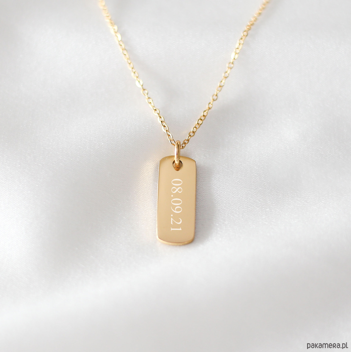 Ten minimalistyczny naszyjnik z prostokątną zawieszką 0,8 × 2 cm wykonany jest ze stali szlachetnej w dwóch kolorach: