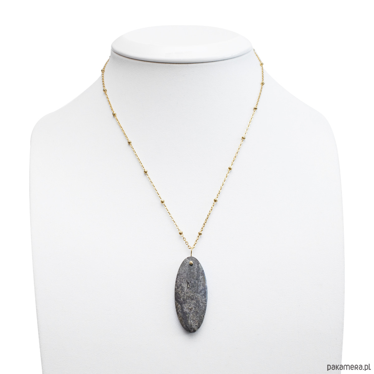 Naszyjnik ma obwód 43 cm + 5 cm regulacji.