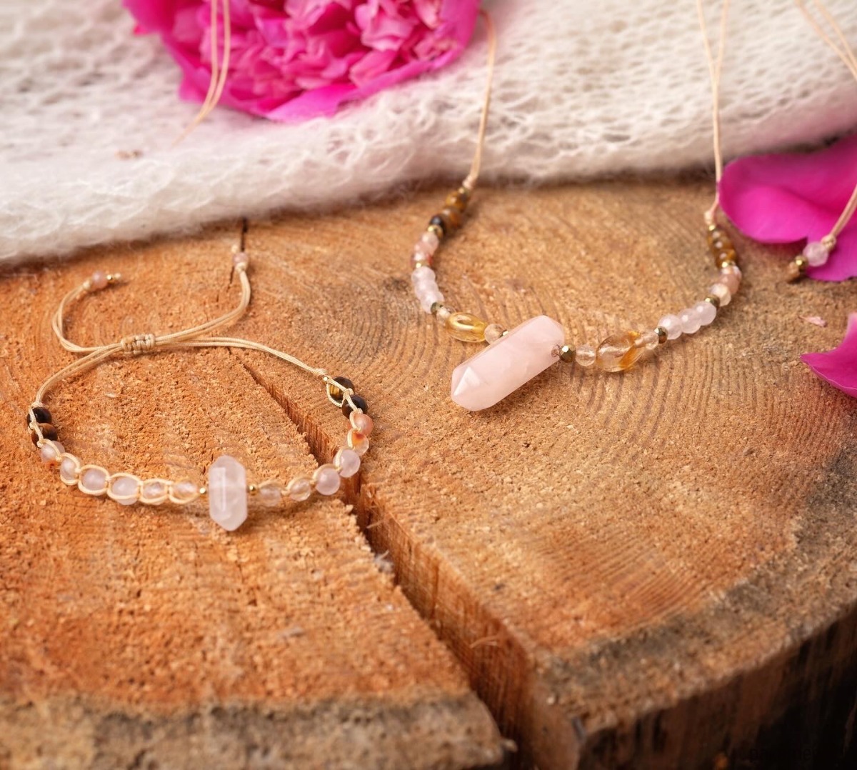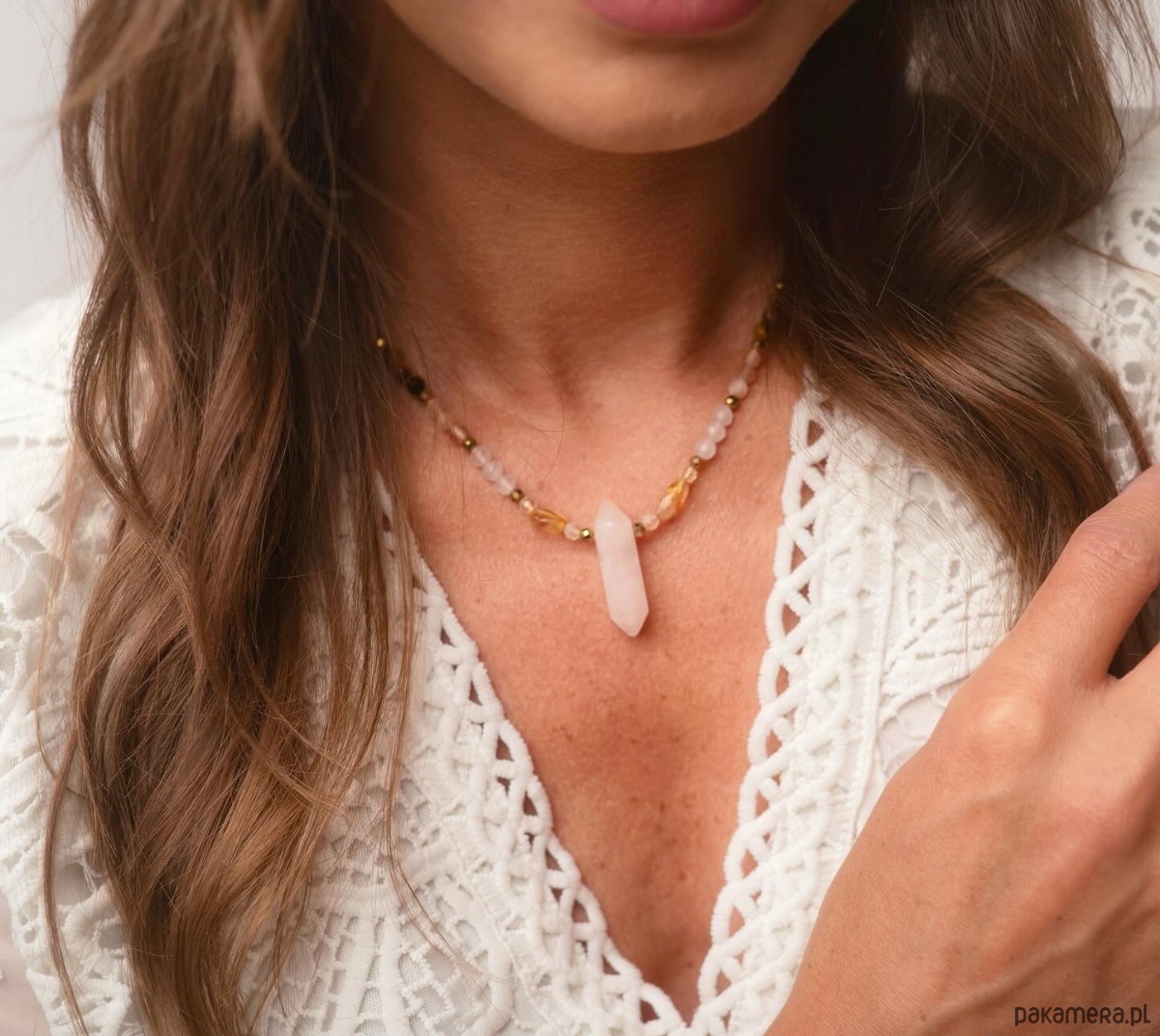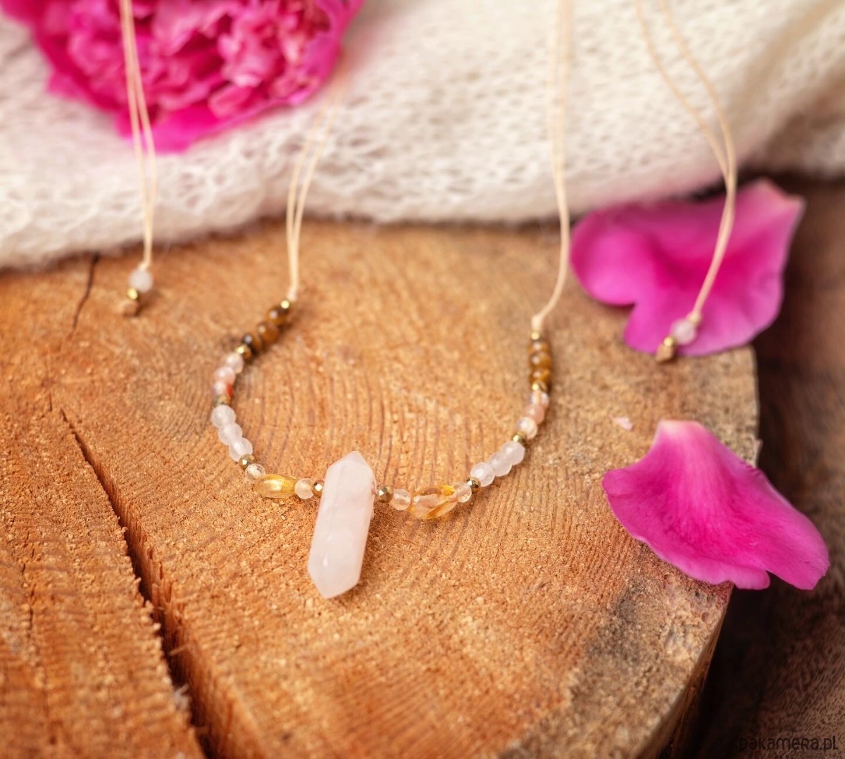 Naszyjnik z kamieni naturalnych, w roli głównej Kwarc Różowy