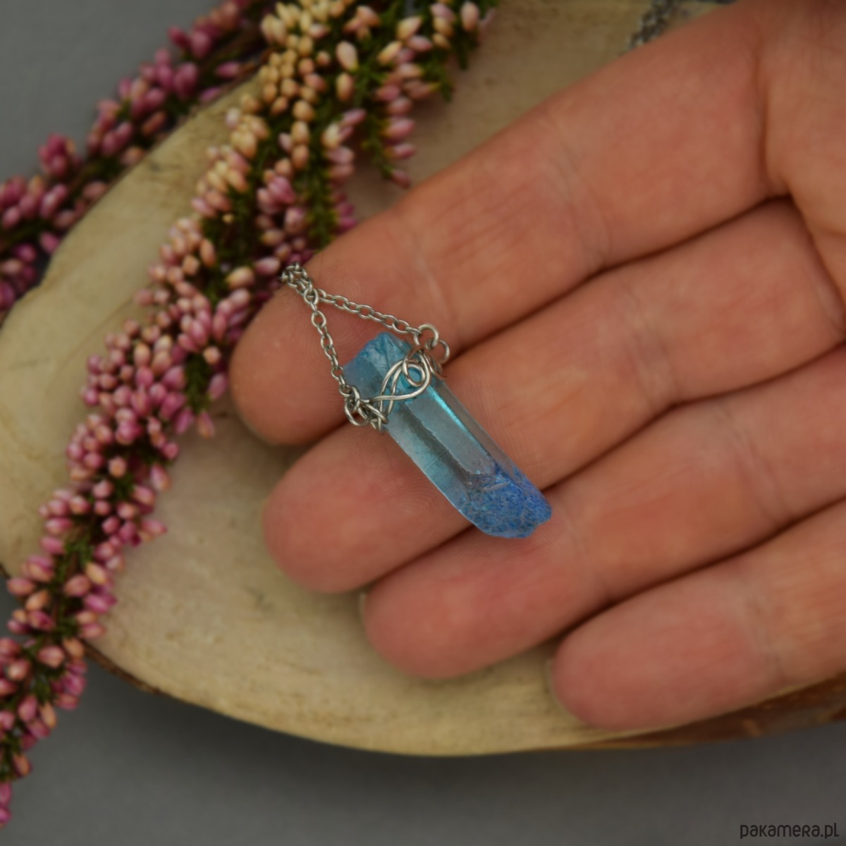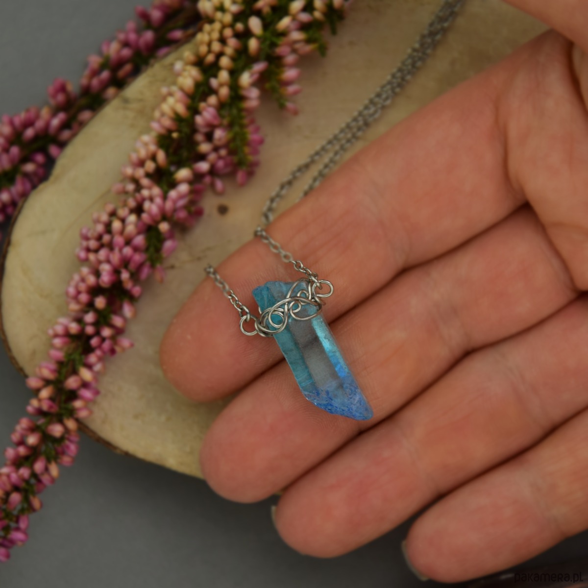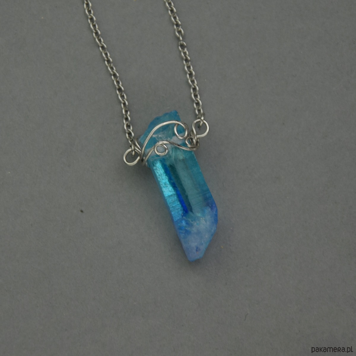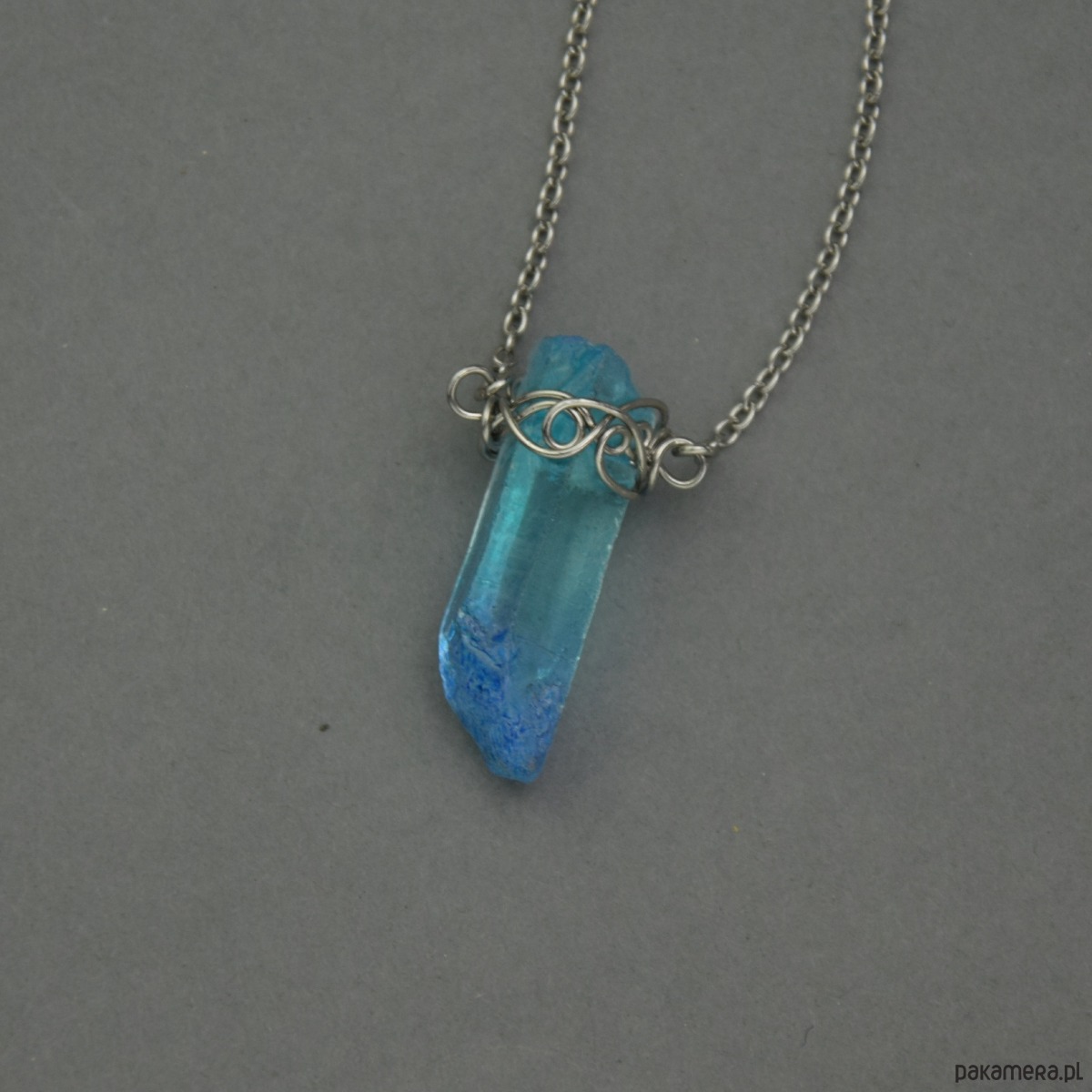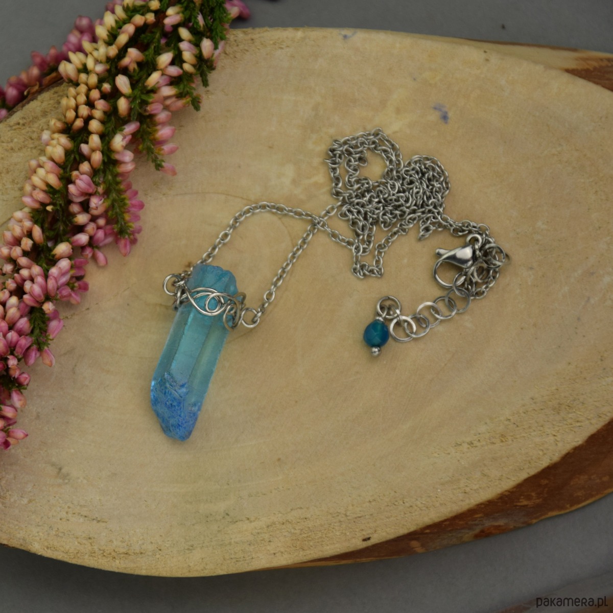 Naszyjnik Talizman niebieski kryształ górski wire wrapping