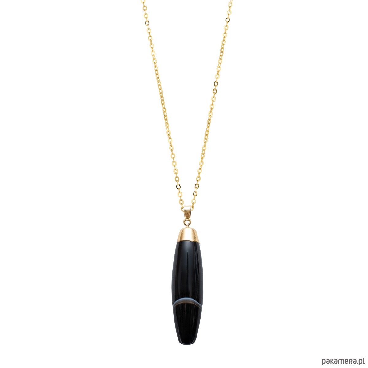 To biżuteria o potężnym wyglądzie i solidnym wykonaniu. Duży, opływowy agat osadzony w złoconej końcówce wisi na klasycznym, złoconym łańcuszku ze stali nierdzewnej. Materiał ten jest wytrzymały i odporny na zniszczenia, gwarantując długotrwały, luksusowy blask.