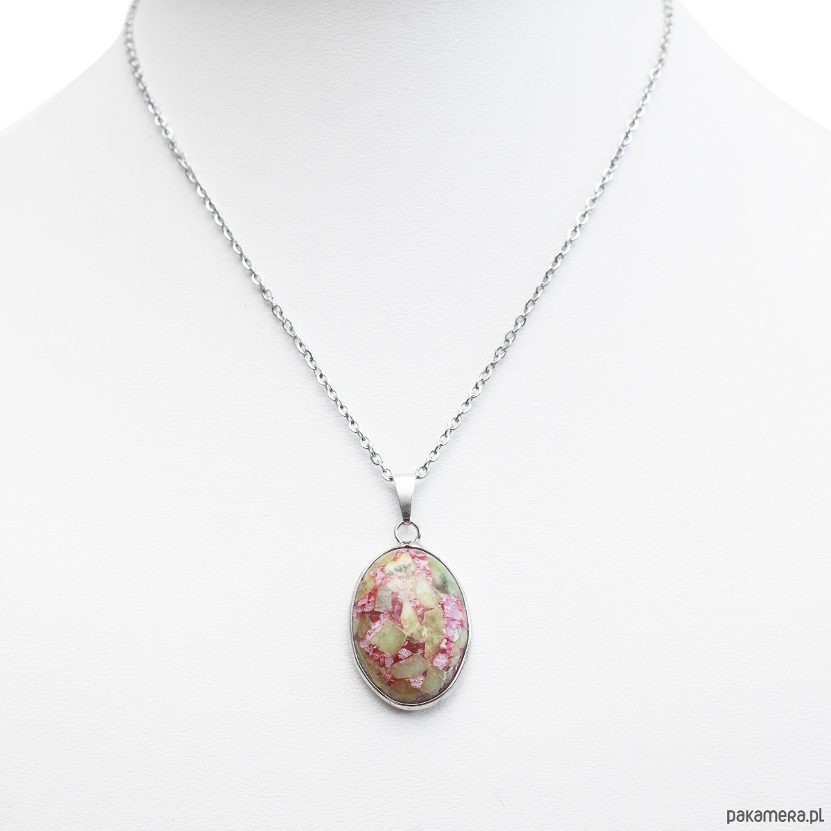 Połączenie Kwarcu różowego i Perydotu to potężny duet dla Twojego serca. Kwarc różowy otwiera na miłość własną i empatię, podczas gdy Perydot wnosi energię obfitości i emocjonalnej równowagi. Razem pomagają uwolnić się od starych obciążeń, robiąc miejsce na radość i nowe, piękne relacje. Mozaika kamieni sprzyja regeneracji sił witalnych i jasności umysłu. Perydot, zwany "szmaragdem wieczornym", rozjaśnia myśli i pomaga patrzeć na świat z optymizmem, wspierając kreatywne rozwiązywanie problemów. Oprawa oraz łańcuszek wykonane ze stali chirurgicznej gwarantują bezpieczeństwo dla skóry i niezmienny blask przez długie lata. Dzięki regulowanemu zapięciu możesz idealnie dopasować długość naszyjnika do każdej stylizacji.