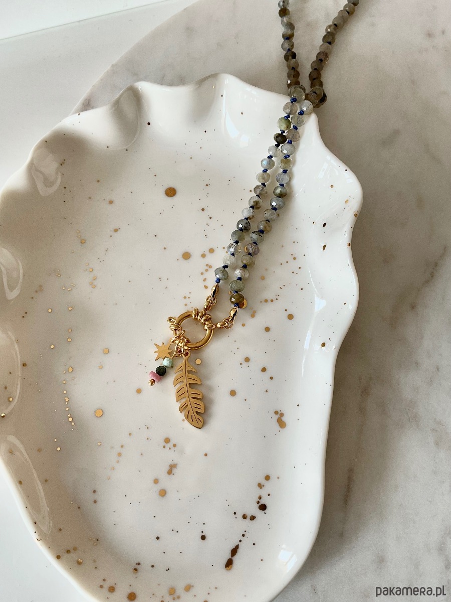 Naszyjnik talizman z labradorytu to wyjątkowa biżuteria, która łączy w sobie magiczną moc kamienia z subtelną elegancją. Labradoryt, znany ze swojej niezwykłej gry kolorów, mieniący się odcieniami niebieskiego, zieleni i złota, symbolizuje intuicję, ochronę i transformację. Kamień ten jest uważany za potężny talizman, który pomaga w odkrywaniu wewnętrznej siły i przyciąga pozytywną energię.