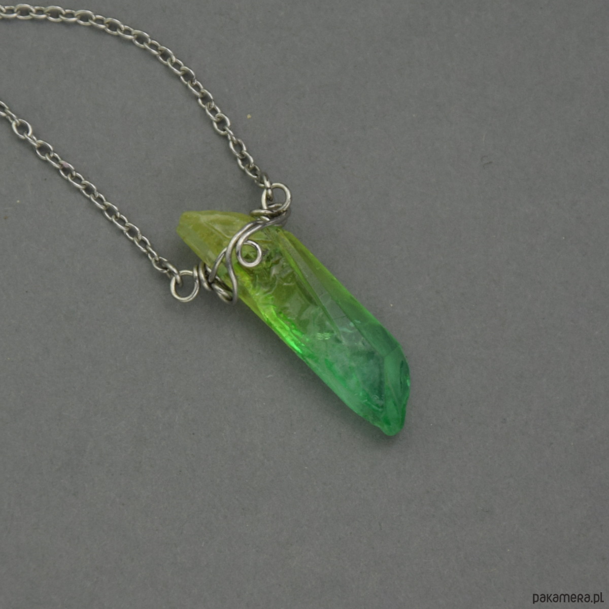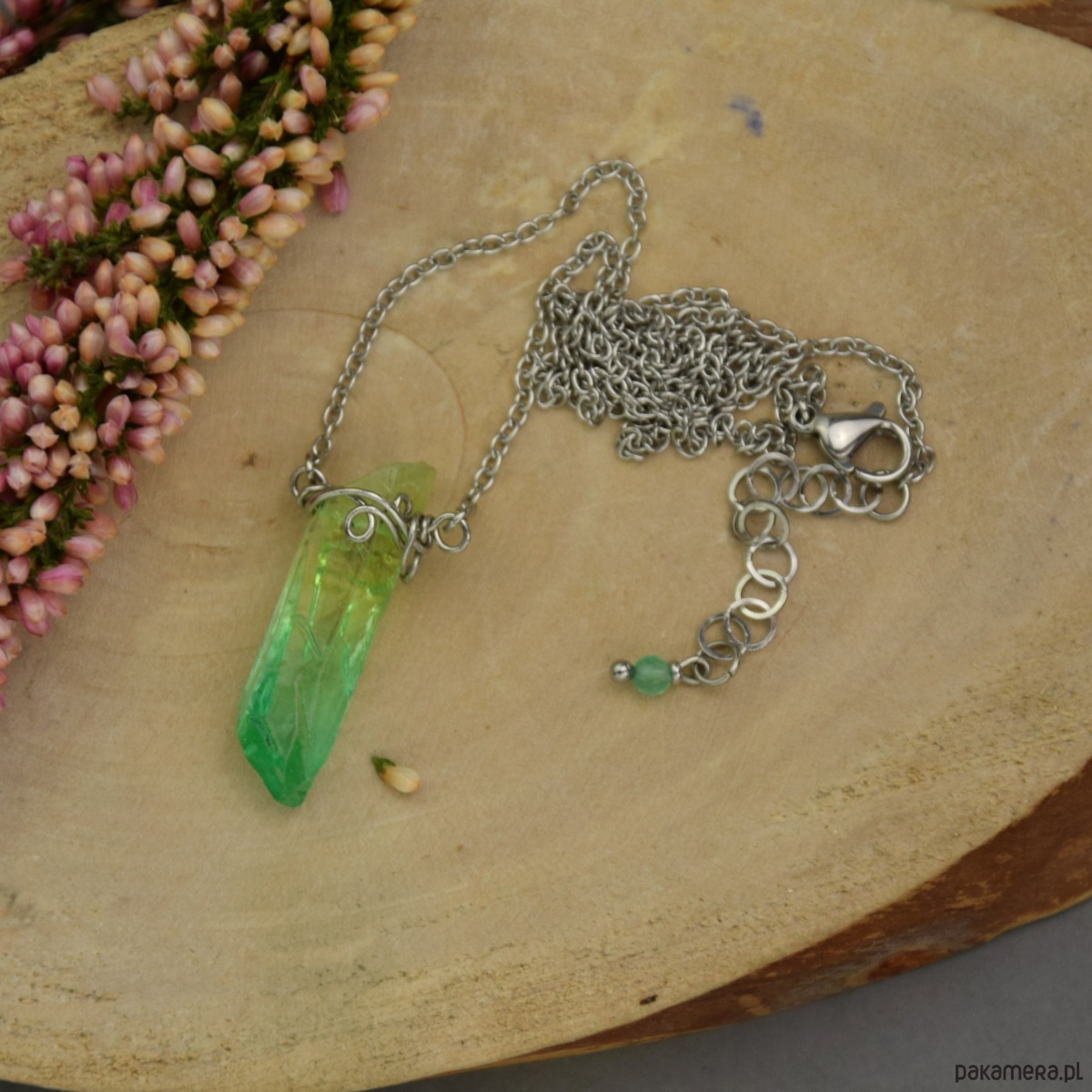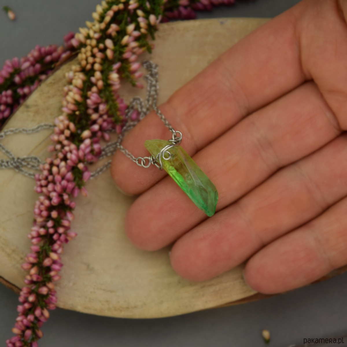 Naszyjnik Talizman zielony kryształ górski wire wrapping