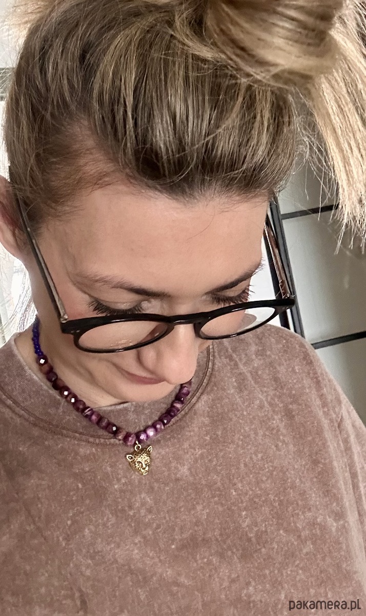 Naszyjnik jest wykończony stalą szlachetną nierdzewną. Na zdjęciu nie widać przedłużki ale standardowo znajdziesz ją przy swoim naszyjniku. Przedłuży go o około 5 cm