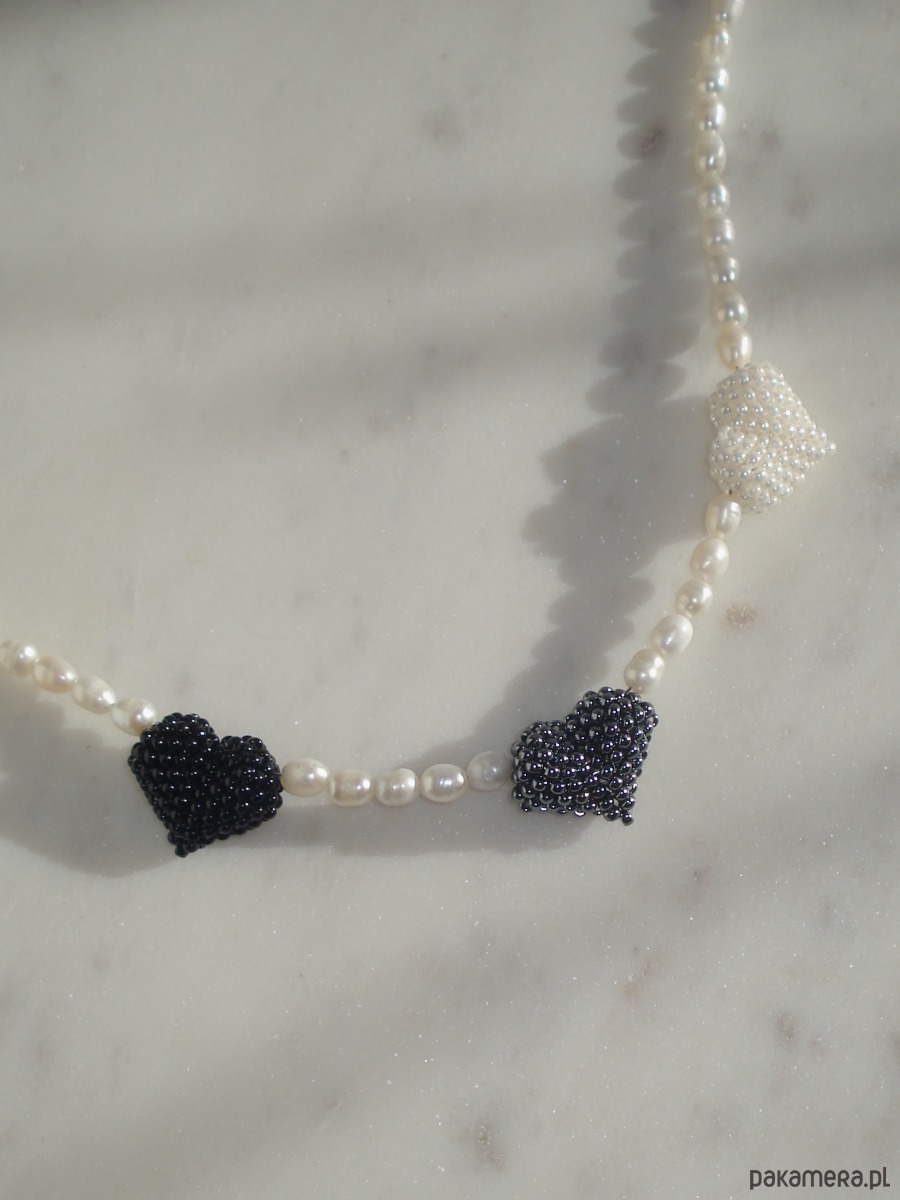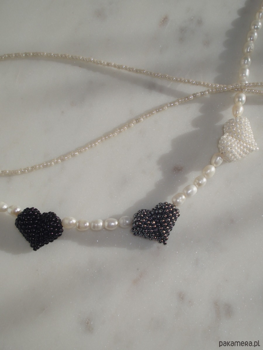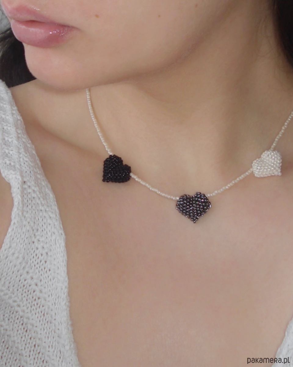 Serca są ręcznie szyte z najwyższej jakości japońskich, szklanych koralików.