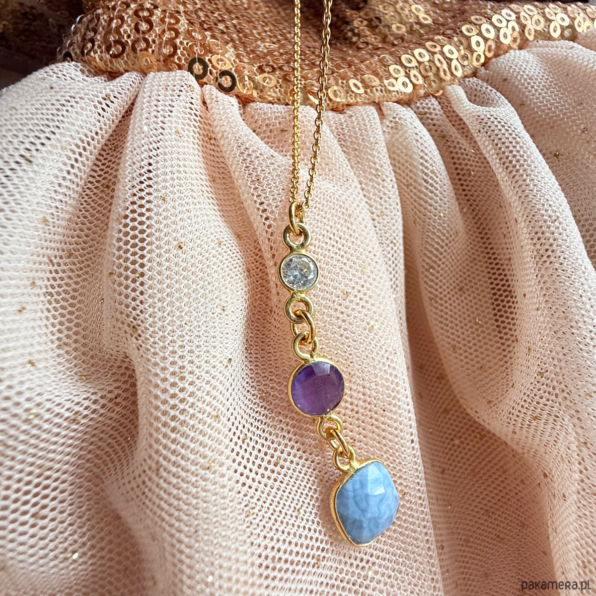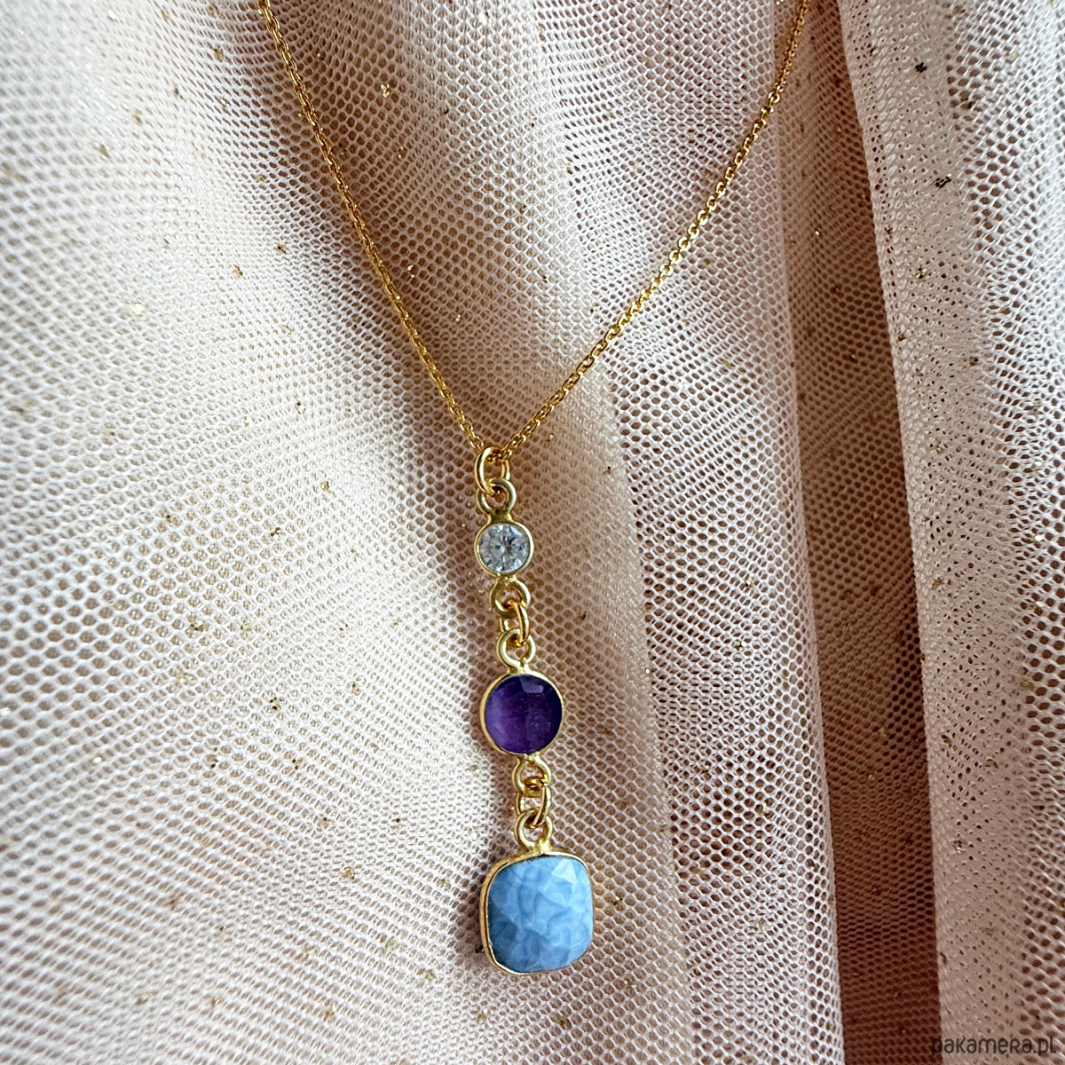Naszyjnik TRINITY ,szlachetne kamienie chalcedon ametyst cyrkonia
