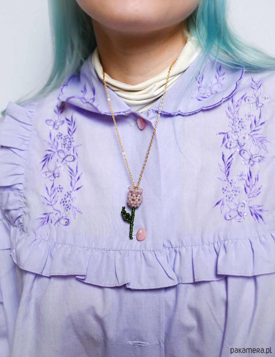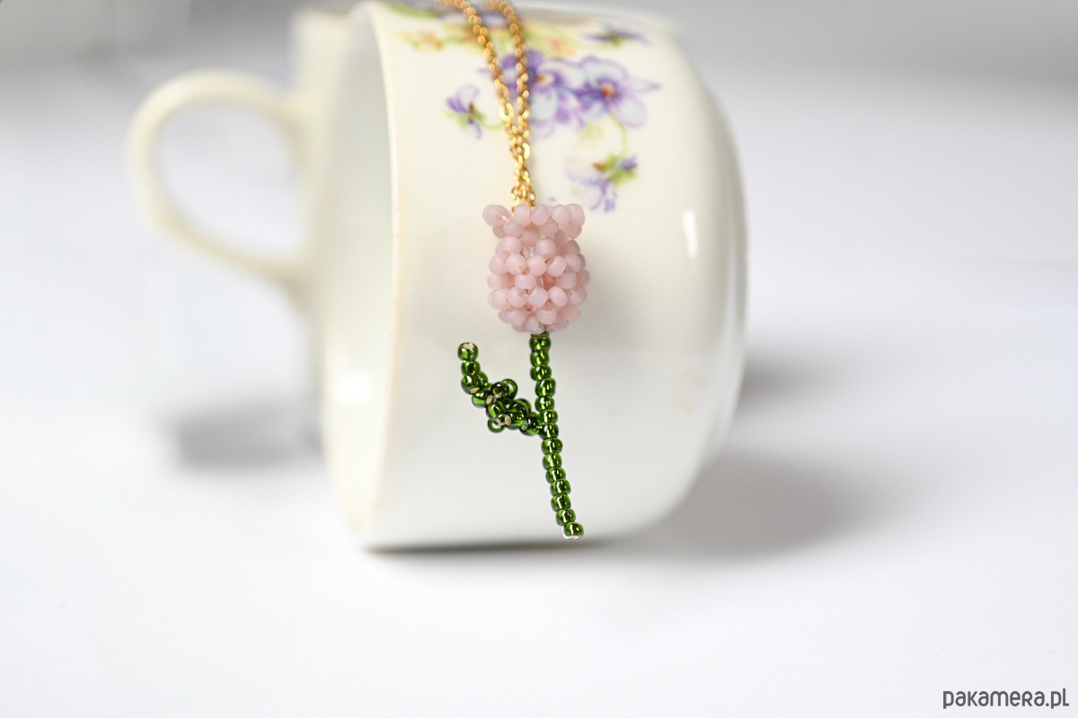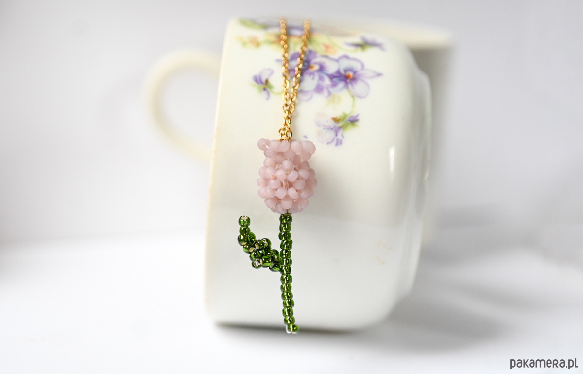 Naszyjnik tulipan w kolorze mauve, handmade kwiat z koralików kwiaty biżuteria
