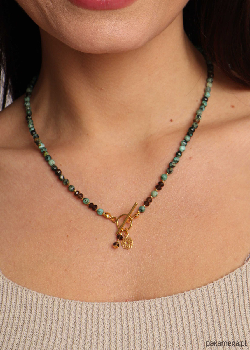 Naszyjnik Turkus Afrykański i Kwarc Dymny Toggle z zawieszką