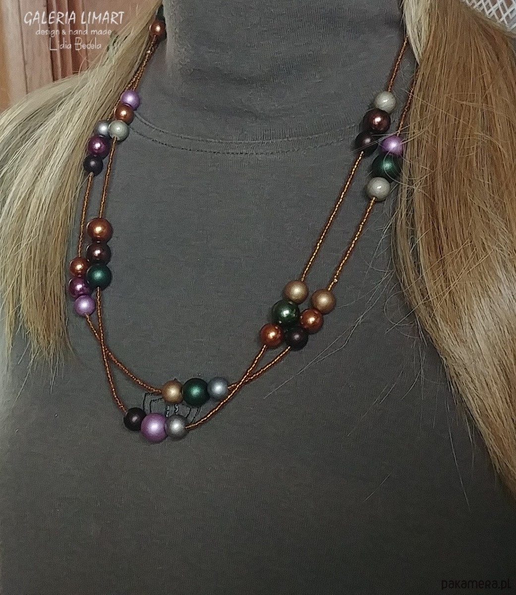 Naszyjnik w cudnych kolorach jesieni ze szklanych pereł super PREZENT handmade