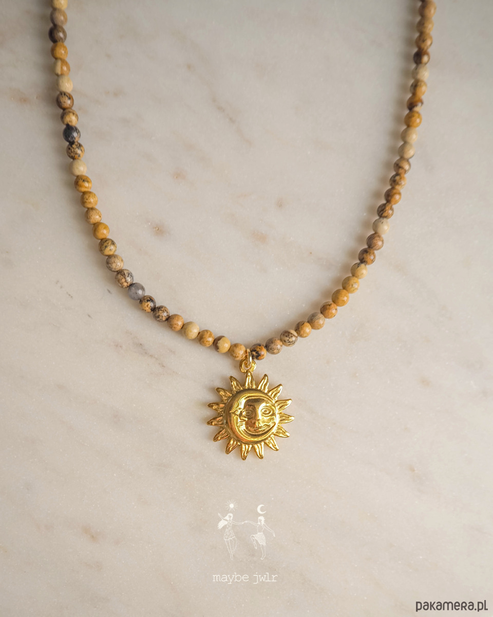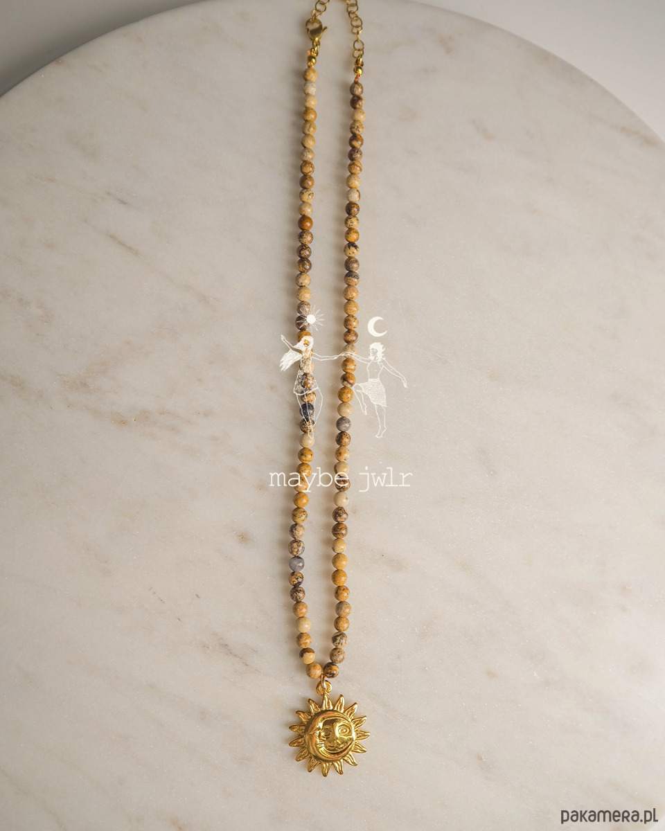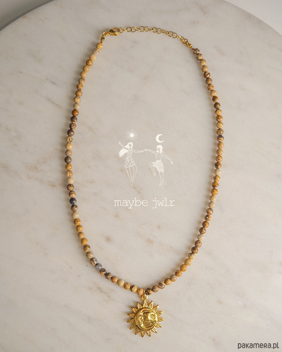 Ten ręcznie wykonany naszyjnik z naturalnych kamieni jaspisu krajobrazowego zachwyca swoim minimalistycznym, prostym designem i subtelną paletą beżowo-brązowych, ziemistych odcieni. Drobne kamienie, oszlifowane na połysk, delikatnie odbijają światło, nadając biżuterii naturalnego blasku i harmonii. Mają 4 mm.