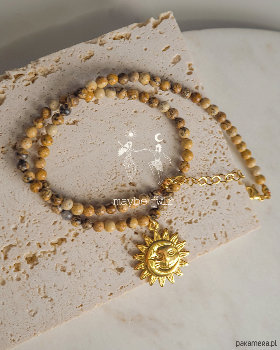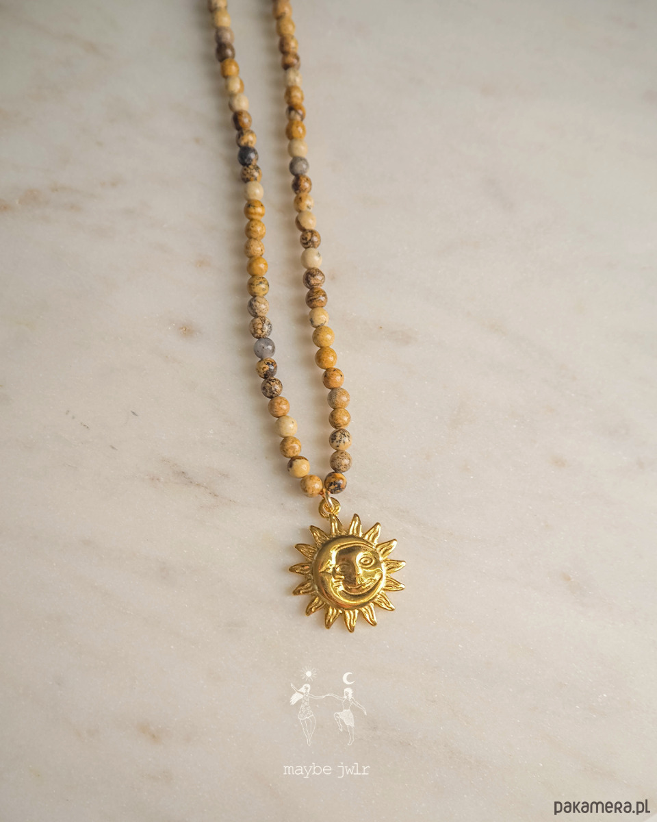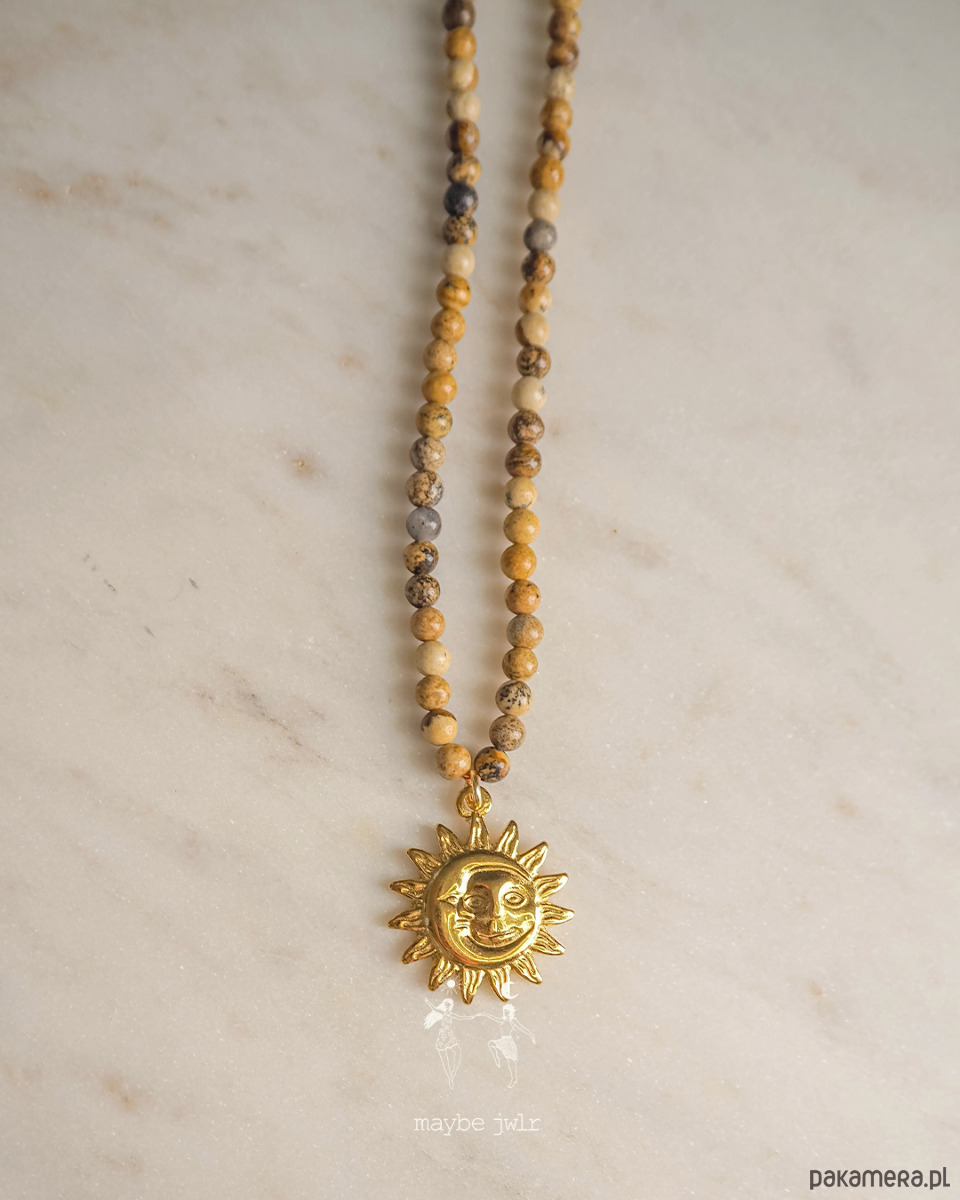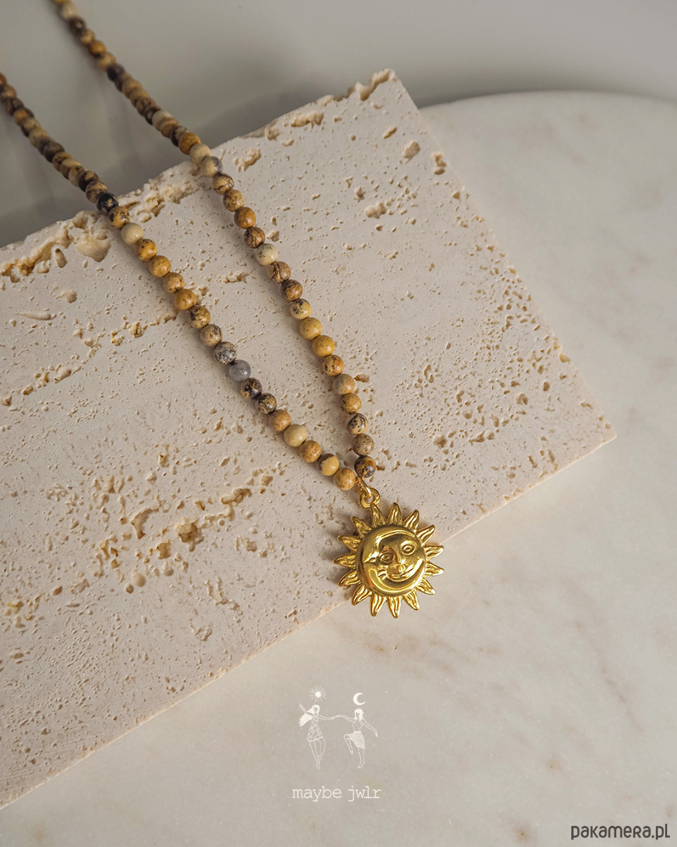 Ten ręcznie wykonany naszyjnik z naturalnych kamieni jaspisu krajobrazowego zachwyca swoim minimalistycznym, prostym designem i subtelną paletą beżowo-brązowych, ziemistych odcieni. Drobne kamienie, oszlifowane na połysk, delikatnie odbijają światło, nadając biżuterii naturalnego blasku i harmonii. Mają 4 mm.