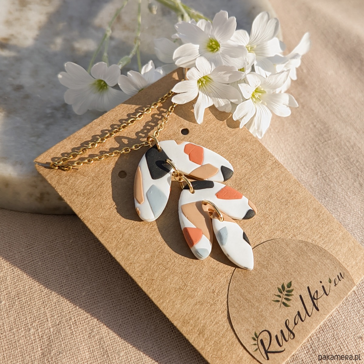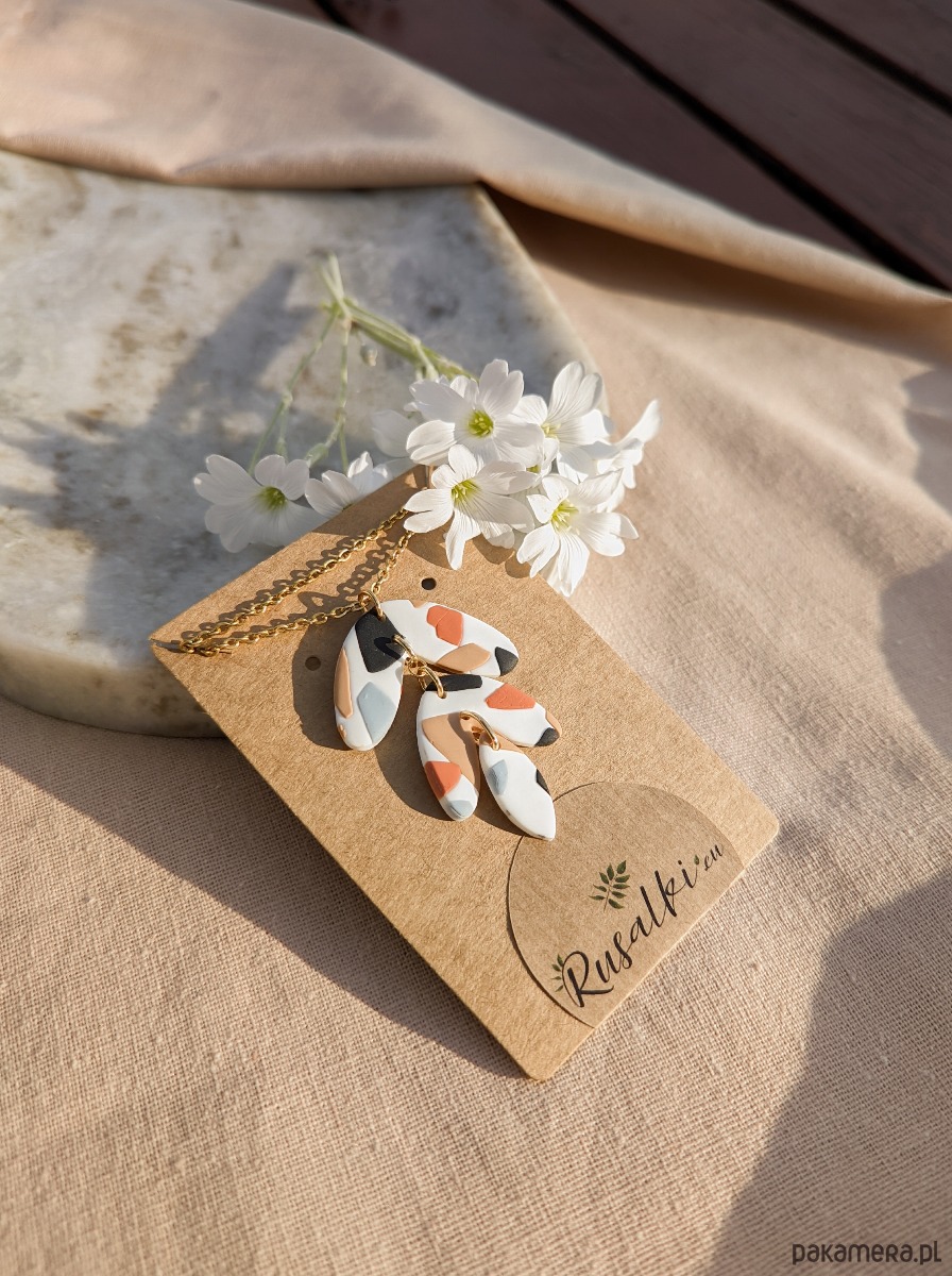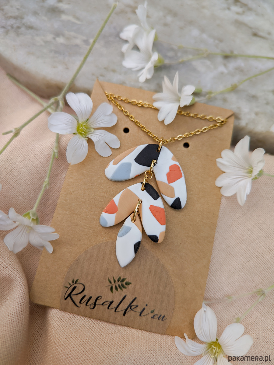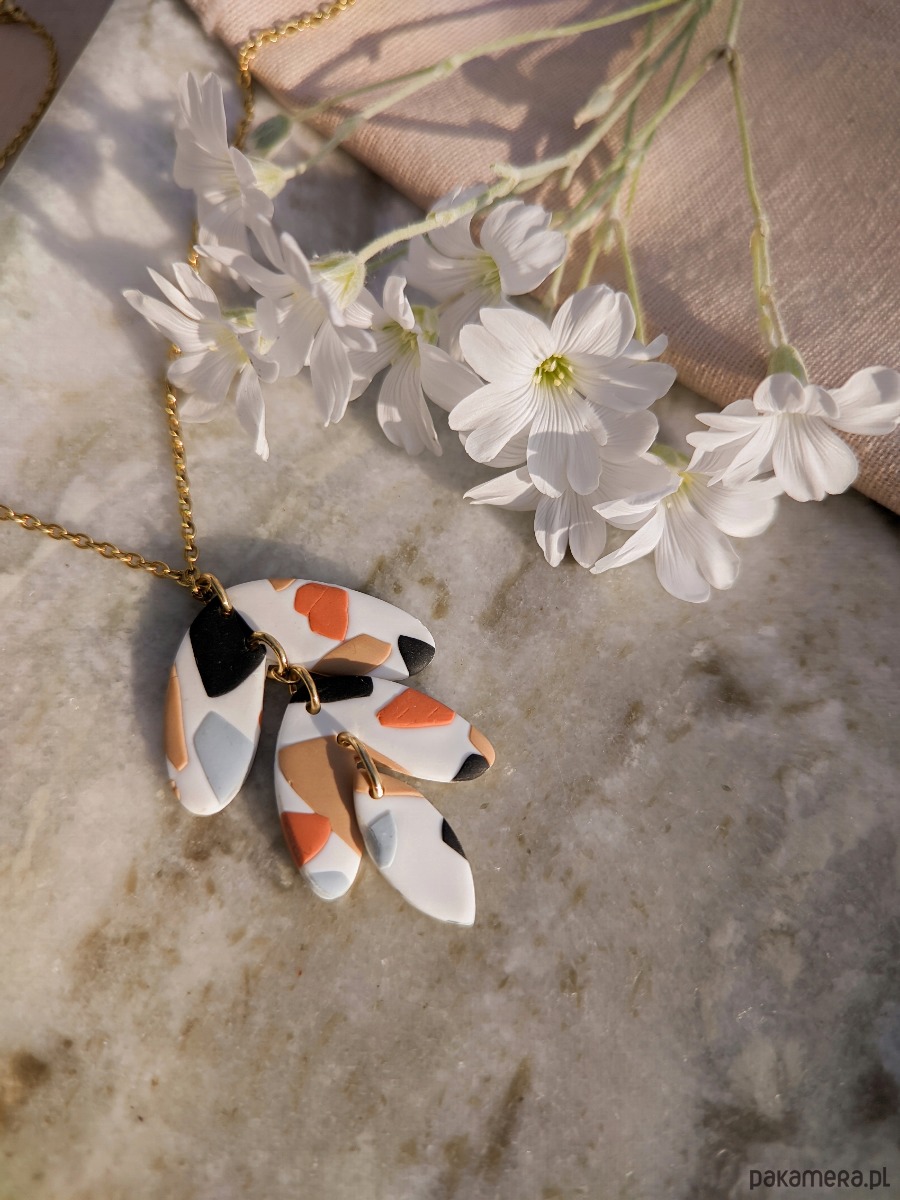 Naszyjnik w stylu boho, lastryko. Wisiorek, zawieszka terrazzo jak beton