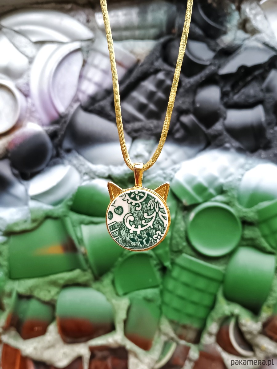 Naszyjnik w zielone wzory kot