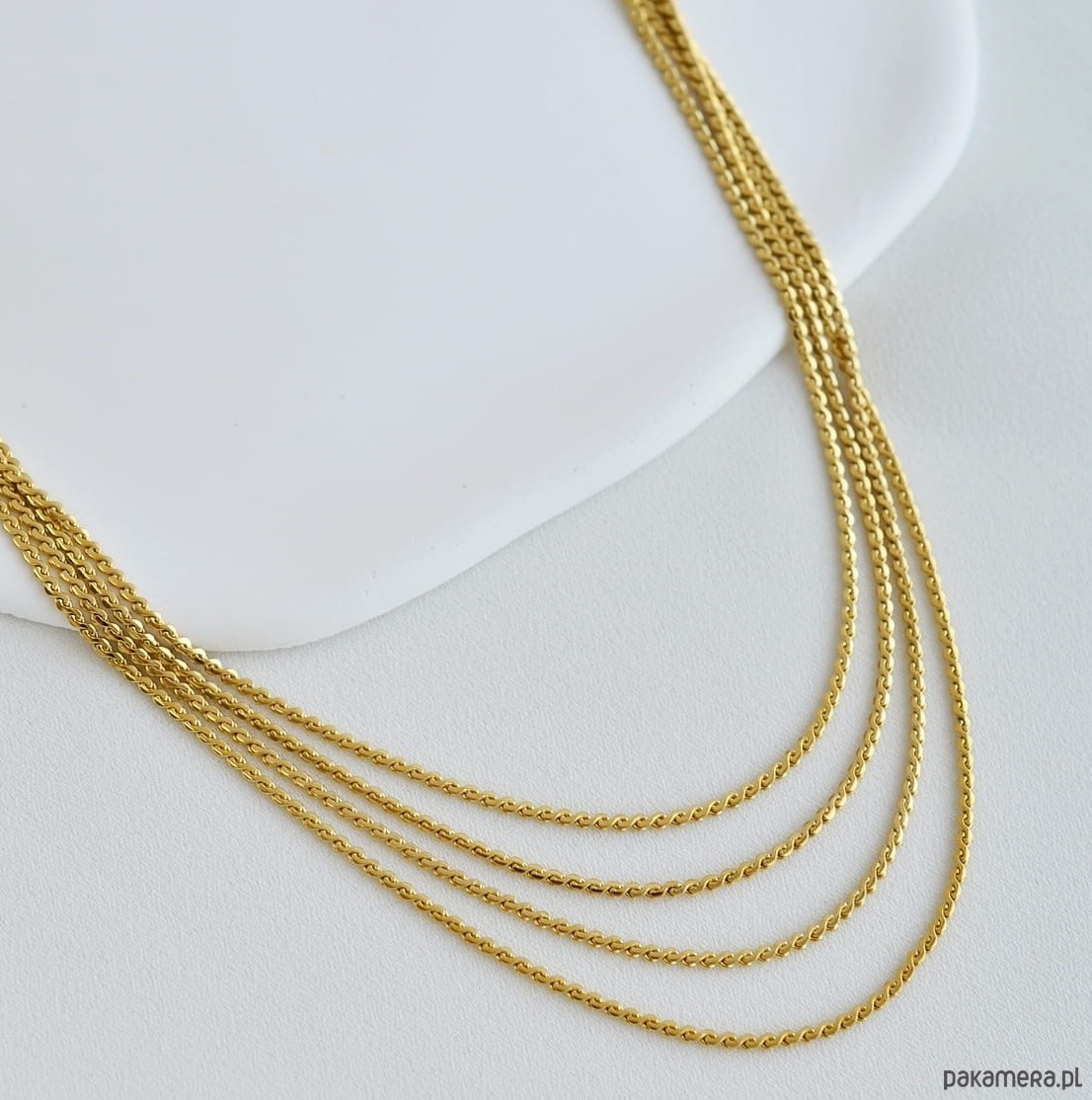 Składa się z czterech subtelnych łańcuszków ułożonych warstwowo, które pięknie się ze sobą komponują, tworząc efektowną całość.