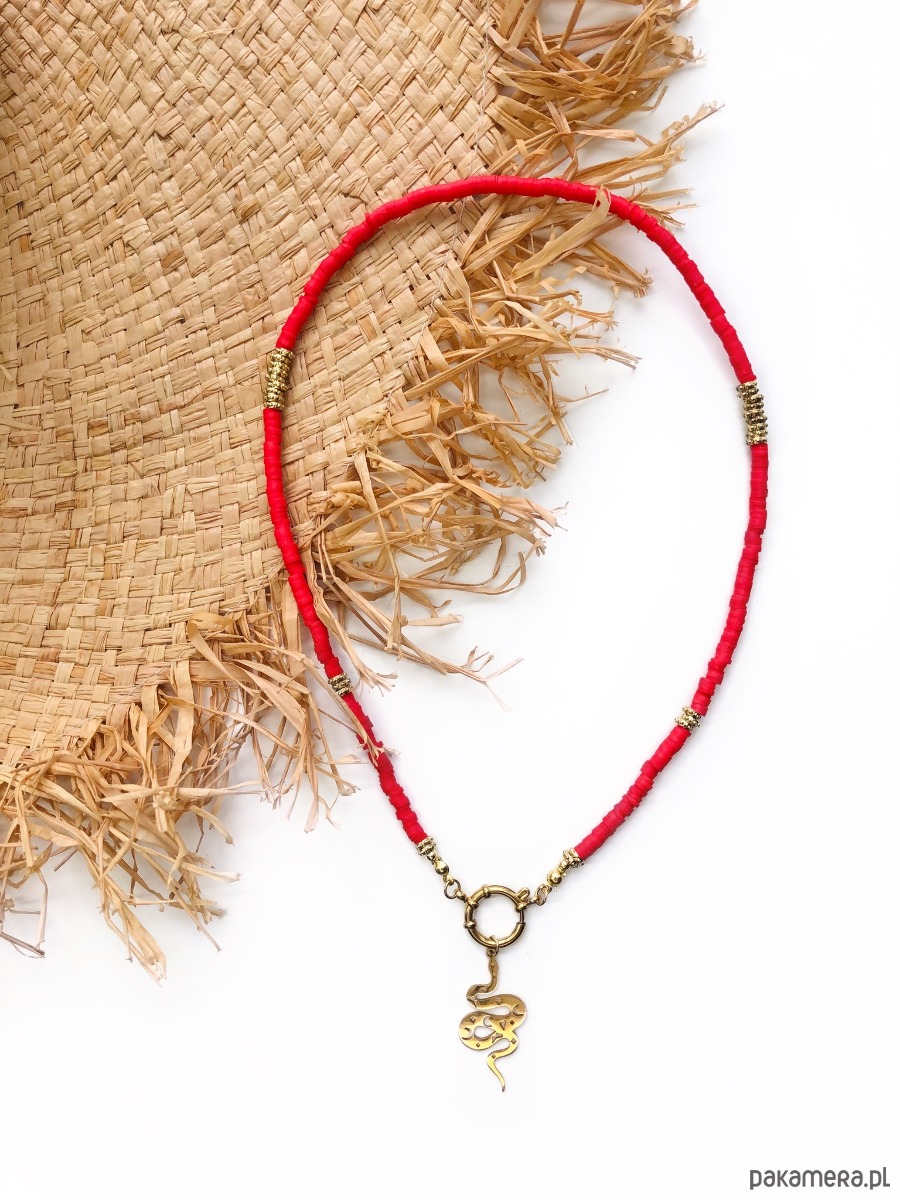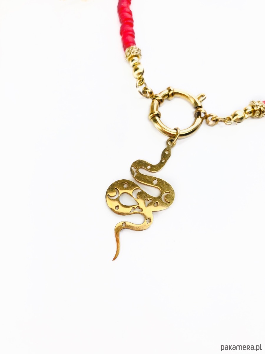 Naszyjnik Wąż odrodzenie spirytualny czerwone złote koraliki