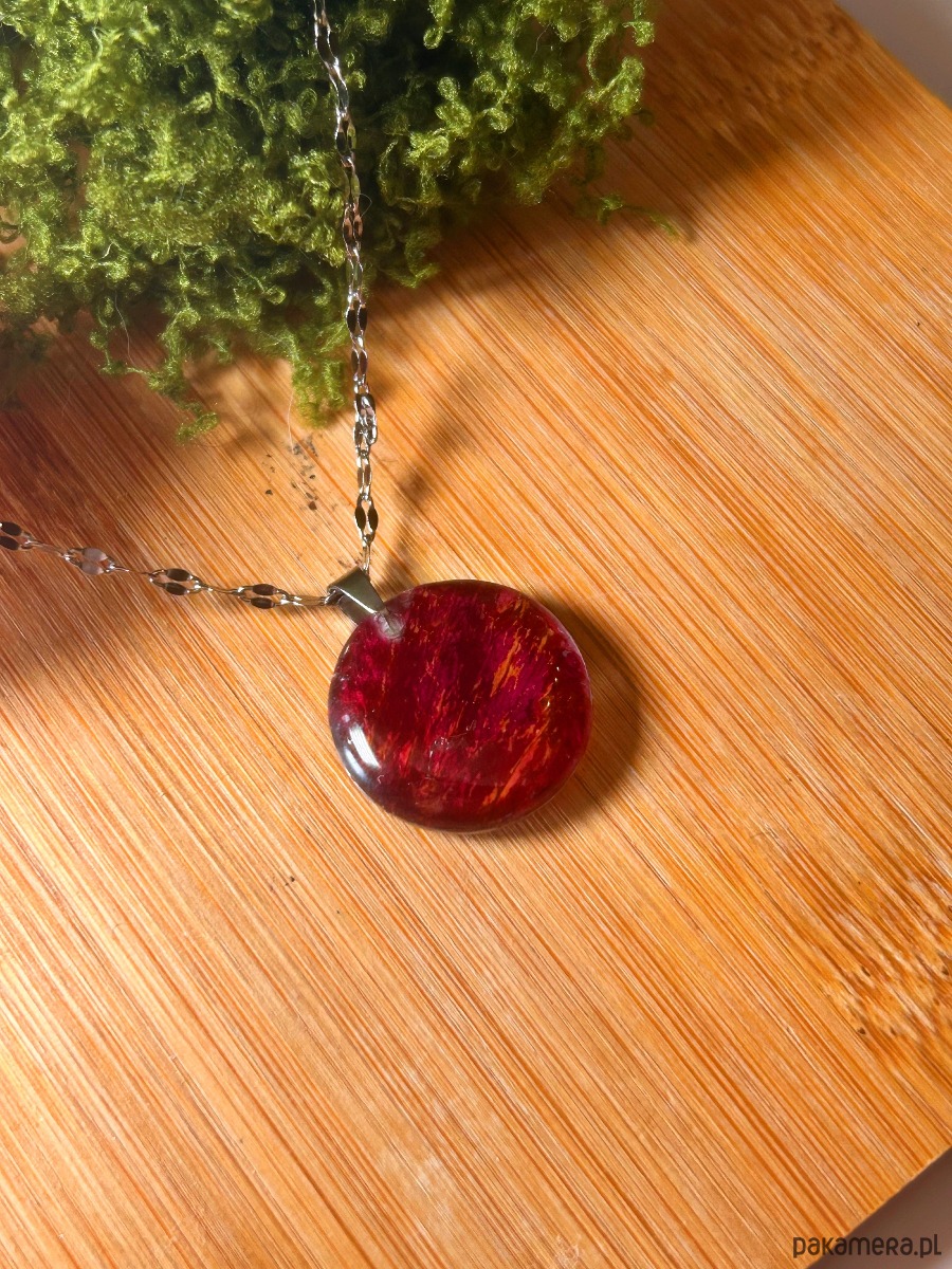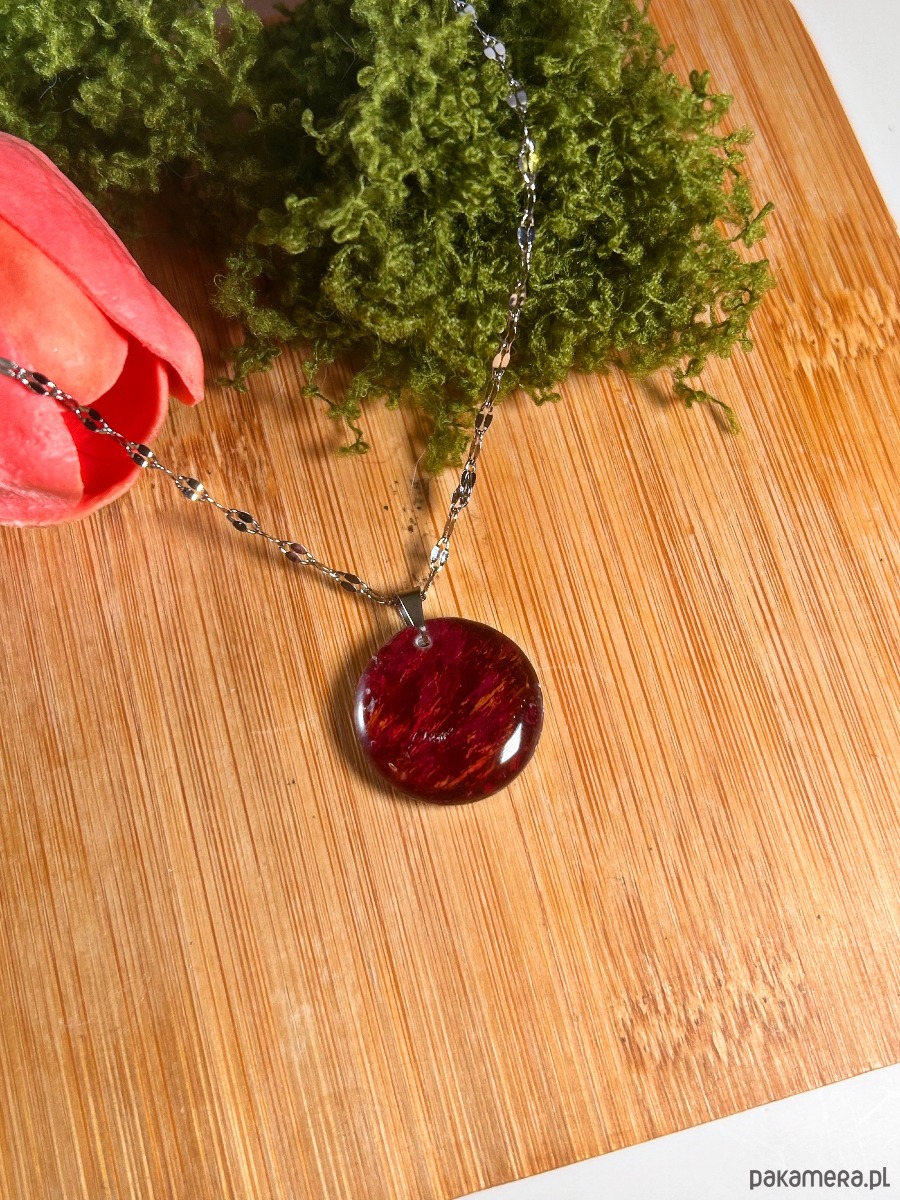 Ten naszyjnik to mały symbol wielkich uczuć. W jego wnętrzu został zatopiony prawdziwy płatek czerwonej róży – kwiatu od wieków kojarzonego z miłością, namiętnością i bliskością. Dzięki żywicy jubilerskiej róża zachowuje swoje piękno na zawsze, stając się trwałą pamiątką ważnych emocji i chwil.