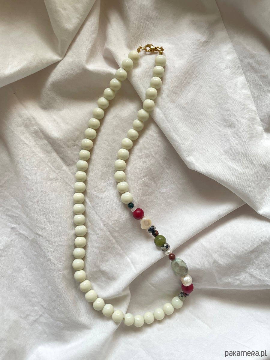 Naszyjnik WILD - śmietankowe, szklane koraliki które dopełniają kamienie naturalne.