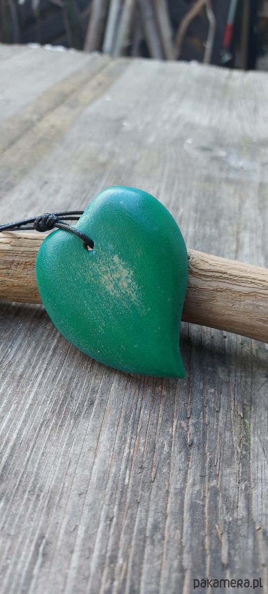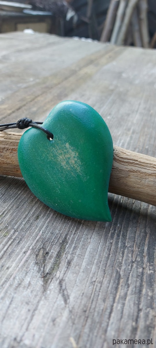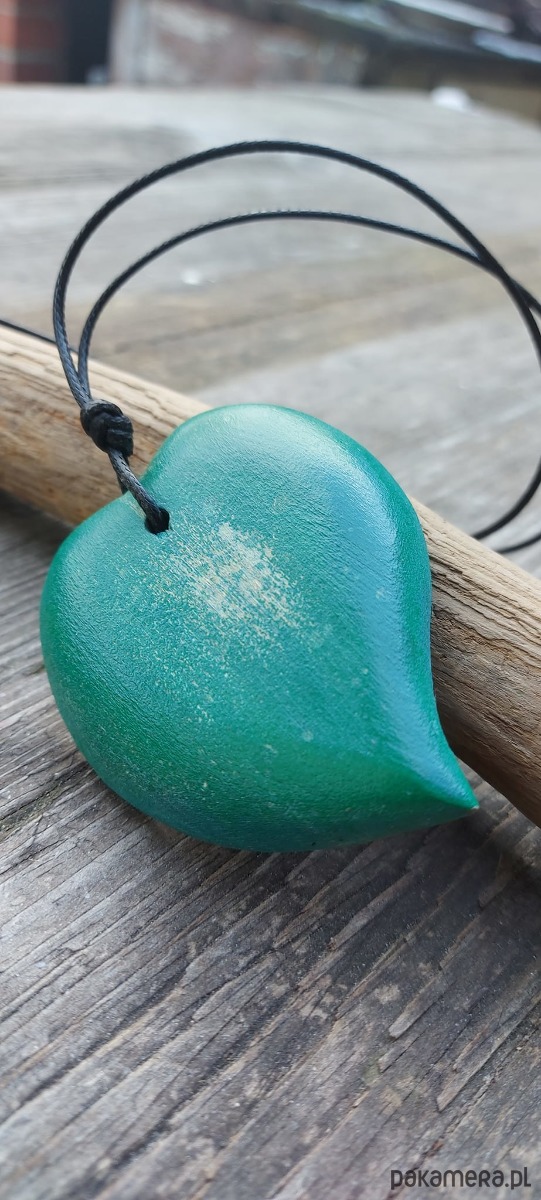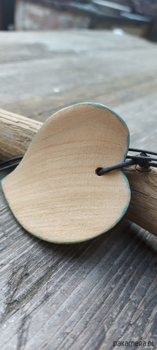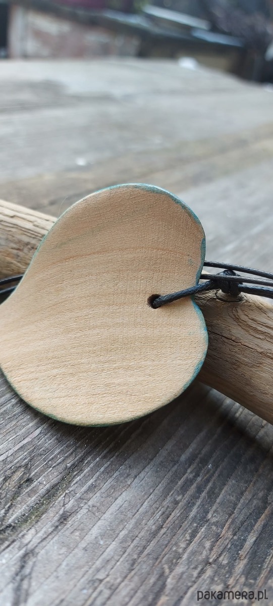 Naszyjnik z drewna w kształcie serca na rzemieniu