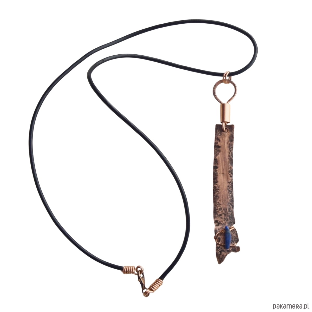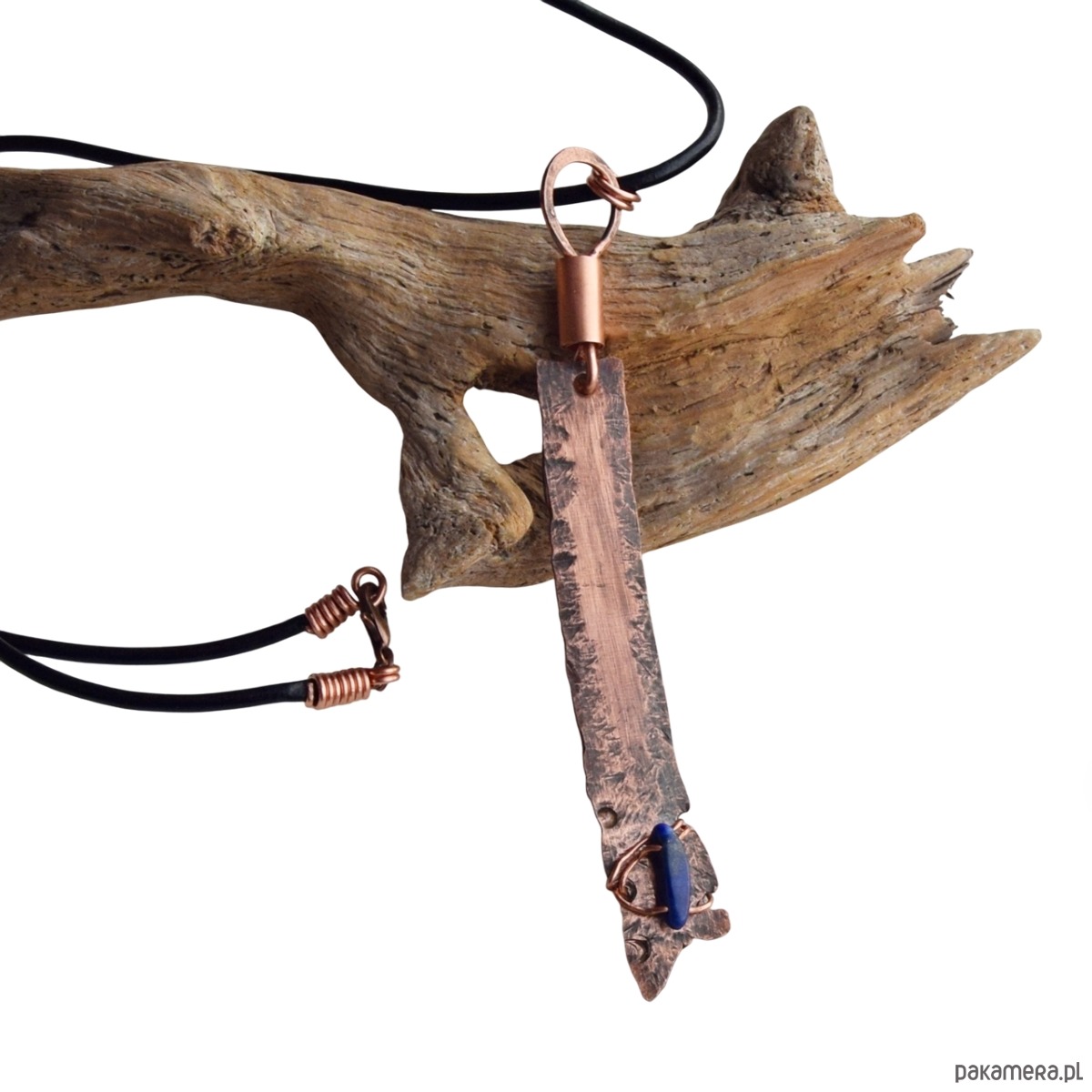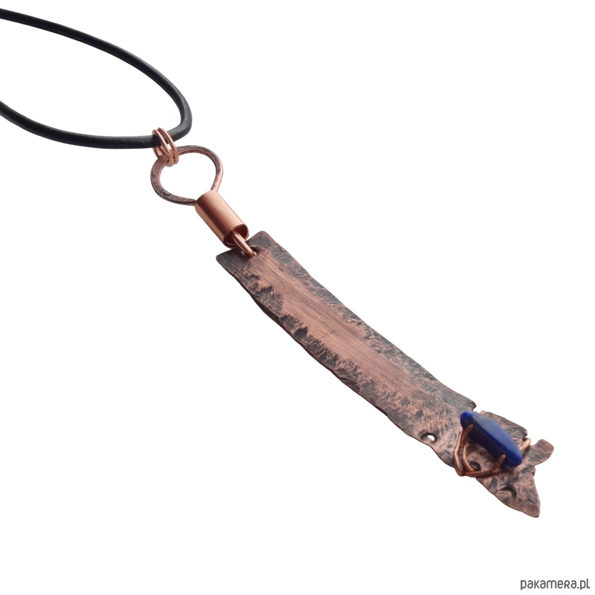 Naszyjnik - wisior z oksydowanej miedzi, lapis lazuli i rzemienia /1/