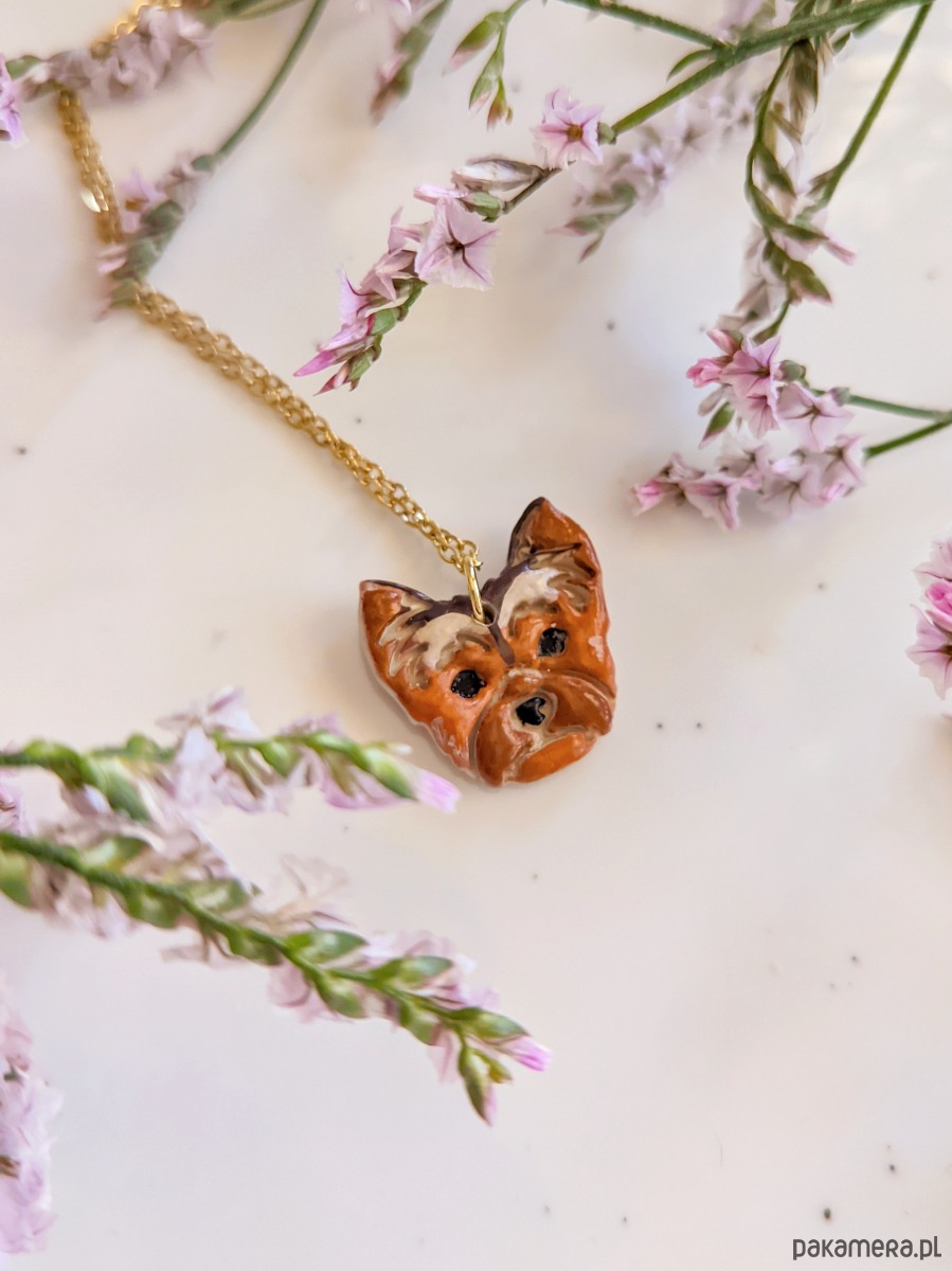 Naszyjnik dla osoby kochającej zwierzęta, stworzony z leciutkiej gliny polimerowej.