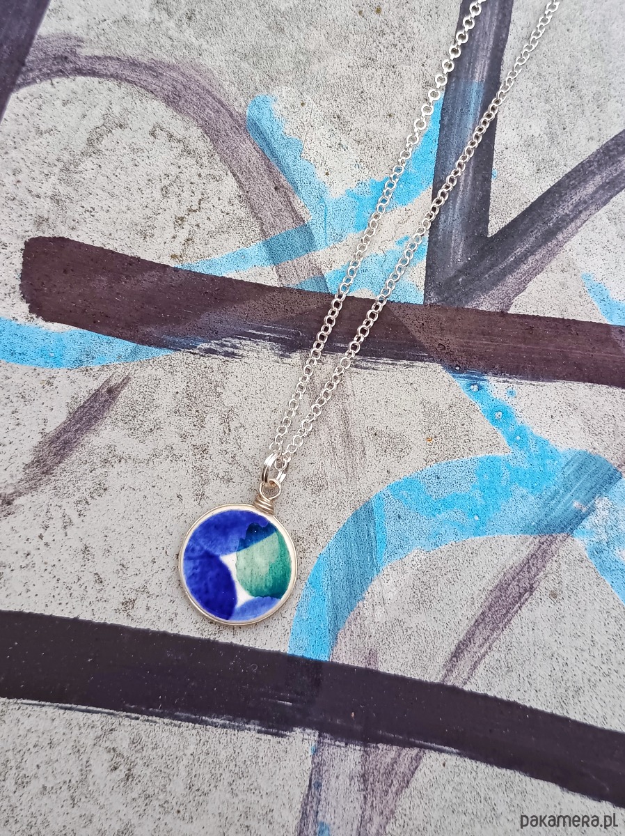 Historia fajansu włocławskiego sięga 1873 roku. Zakładów było kilka, zmieniali się właściciele i lokalizacje. Produkcja najbardziej rozwinęła się po II WŚ, kiedy w miejscowych zakładach powstawał nie tylko fajans, ale również porcelit i porcelana. Zróżnicowane było także wzornictwo - produkowano nie tylko naczynia, ale również elementy wyposażenia wnętrz (lampy, świeczniki, żyrandole). Mimo tej różnorodności, najbardziej rozpoznawalnym wyrobem z Włocławka jest talerz w ręcznie malowane kobaltowe kwiaty (z takich najchętniej korzystam :). I mimo, że najdłużej działająca fabryka zakończyła działalność w 1991 roku, dzięki lokalnym inicjatywom produkcja fajansu została wznowiona i trwa do dziś! Oto naszyjnik, który wykonałam z fragmentu fajansu włocławskiego, ręcznie malowanego w kolorowe kwiaty. Kawałek stłuczonego talerza oszlifowałam nadając okrągły kształt, oprawiłam w drucik i zamocowałam na srebrnym łańcuszku (srebro 925). Ceramikę zeszlifowałam również z grubości - jest cieńsza niż pierwotnie, dzięki czemu zawieszka nie jest masywna. Brzegi i tył pokryłam lakierem, co sprawia, że nie brudzą się i nie chłoną wilgoci. Średnica zawieszki ceramicznej: 14 mm. Długość łańcuszka w całości: 45 cm. Unikat- każdy z moich wyrobów występuje w jednym egzemplarzu. Upcykling - nie reprodukuję wykorzystywanych wzorów, niczego nie domalowuję - wykorzystuję wyłącznie oryginalne naczynia i motywy, które się na nich znajdują. Tym samym, stłuczce z odzysku nadaję nowe życie.