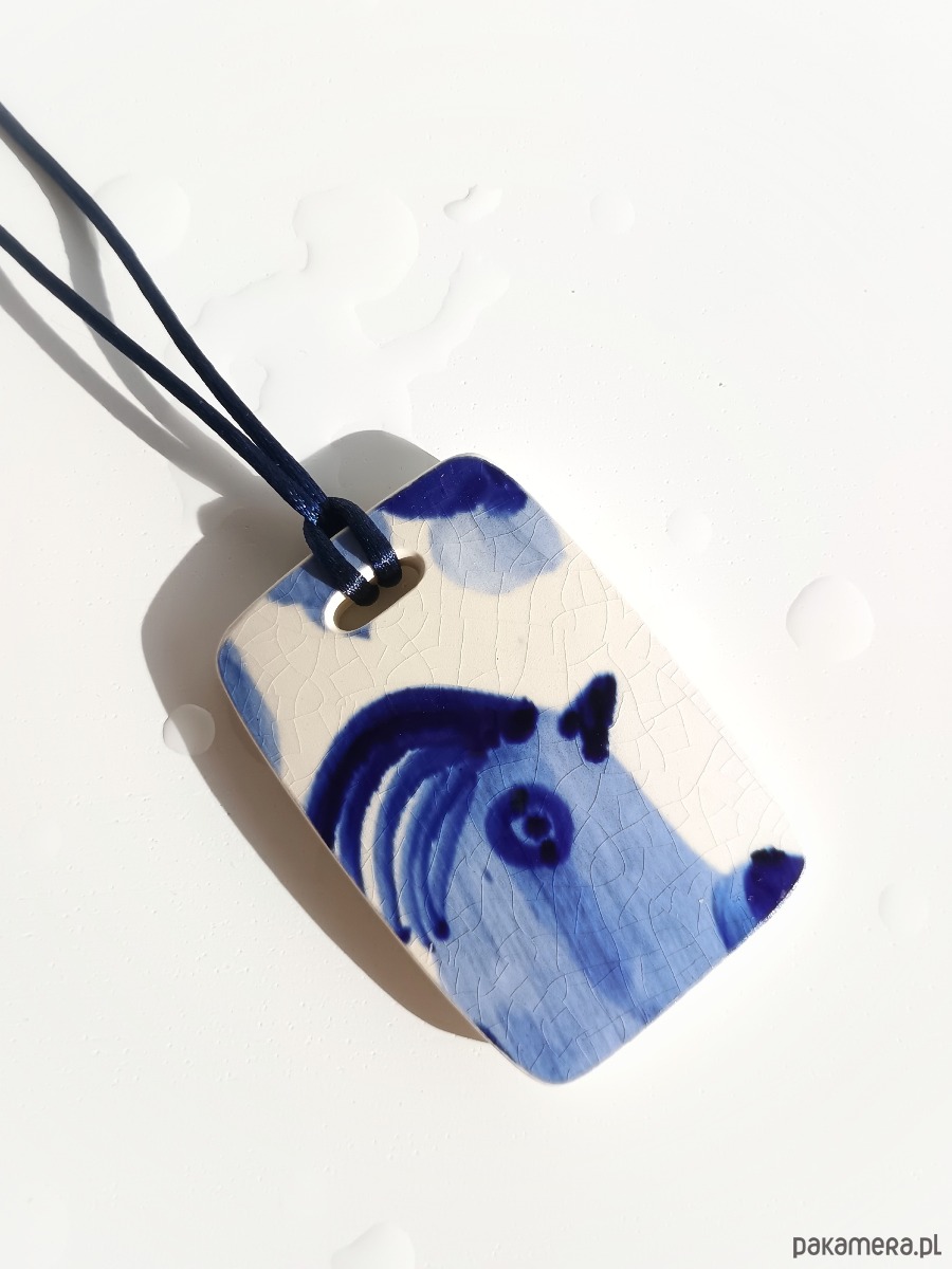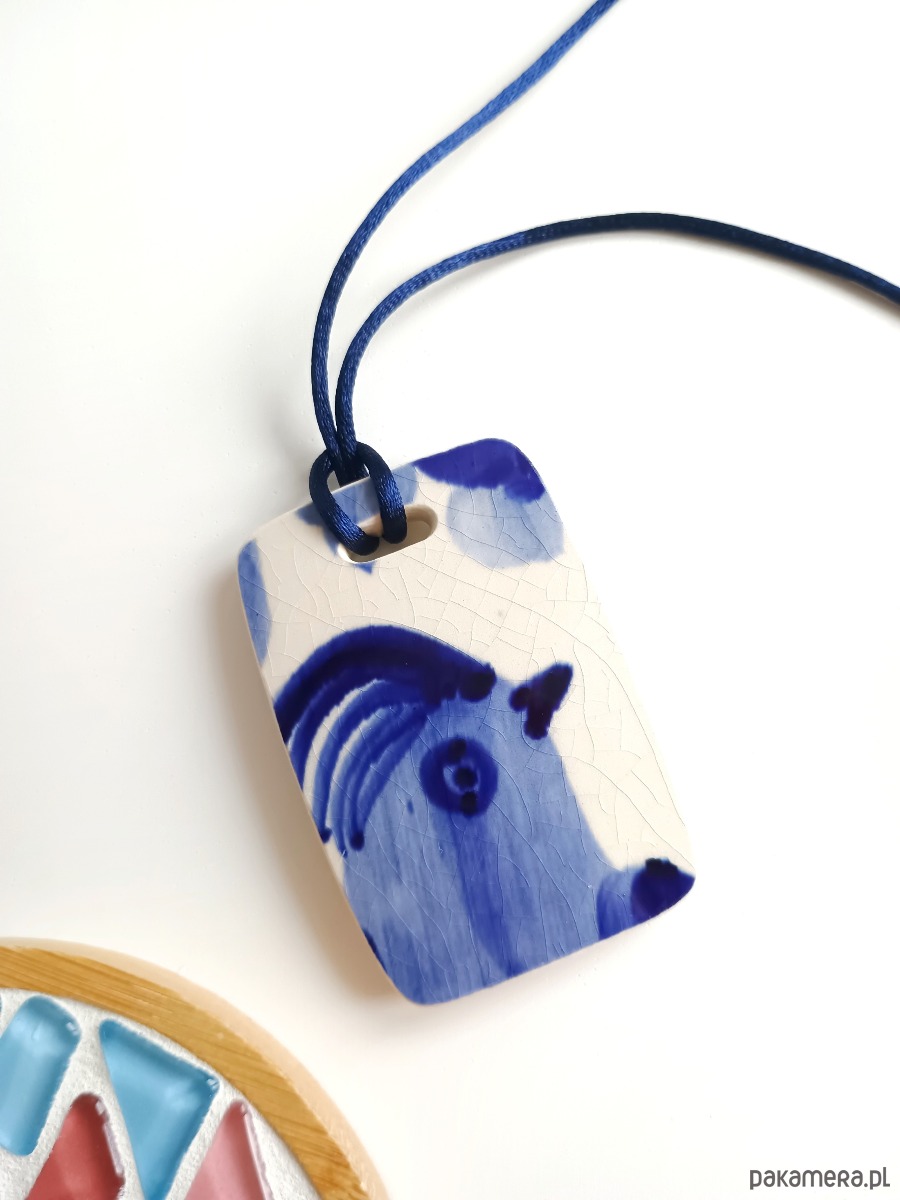 Historia fajansu włocławskiego sięga 1873 roku. Zakładów było kilka, zmieniali się właściciele i lokalizacje. Produkcja najbardziej rozwinęła się po II WŚ, kiedy w miejscowych zakładach powstawał nie tylko fajans, ale również porcelit i porcelana. Zróżnicowane było także wzornictwo - produkowano nie tylko naczynia, ale również elementy wyposażenia wnętrz (lampy, świeczniki, żyrandole). Mimo tej różnorodności, najbardziej rozpoznawalnym wyrobem z Włocławka jest talerz w ręcznie malowane kobaltowe kwiaty (z takich najchętniej korzystam :). I mimo, że najdłużej działająca fabryka zakończyła działalność w 1991 roku, dzięki lokalnym inicjatywom produkcja fajansu została wznowiona i trwa do dziś! Oto naszyjnik, który wykonałam z fragmentu fajansu włocławskiego ręcznie malowanego w kobaltowe wzory. Fragment oszlifowałam w prostokątny kształt z otworem. Brzegi pokryłam lakierem, co sprawia, że nie brudzą się i nie chłoną wilgoci. Do zawieszki dobrałam satynowy sznureczek w kolorze granatowym. Wymiary elementu ceramicznego: 45 x 67 mm. Długość sznureczka w całości: ok. 80 cm (naszyjnik zakłada się przez głowę). Upcykling - nie reprodukuję wykorzystywanych wzorów, niczego nie domalowuję - wykorzystuję wyłącznie oryginalne naczynia i motywy, które się na nich znajdują. Tym samym, stłuczce z odzysku nadaję nowe życie.
