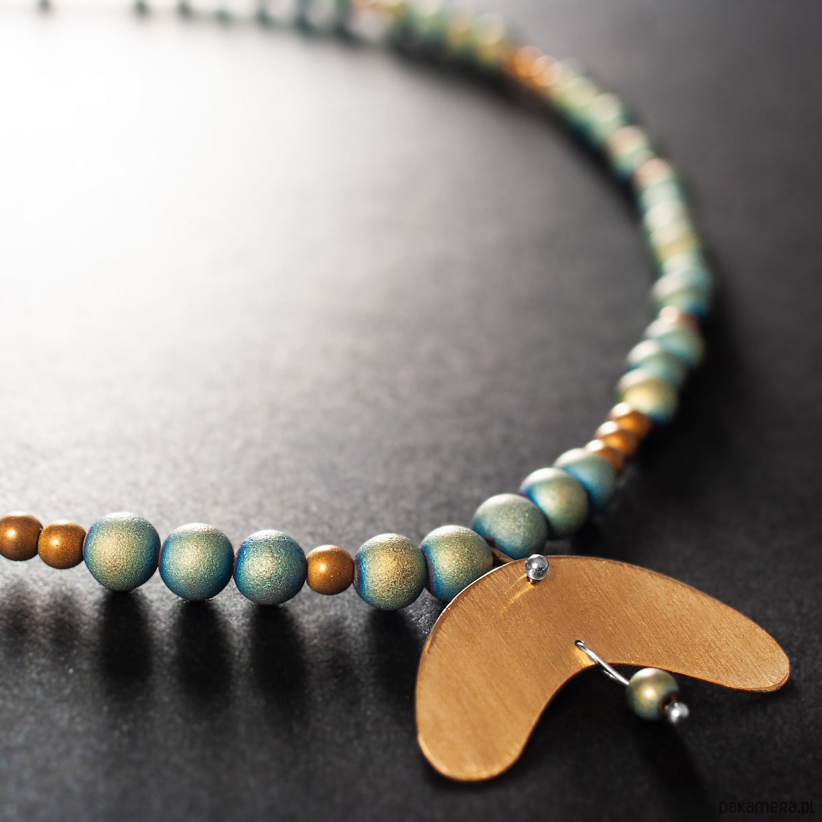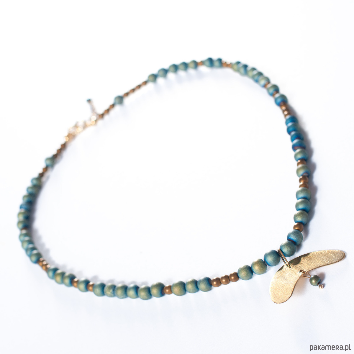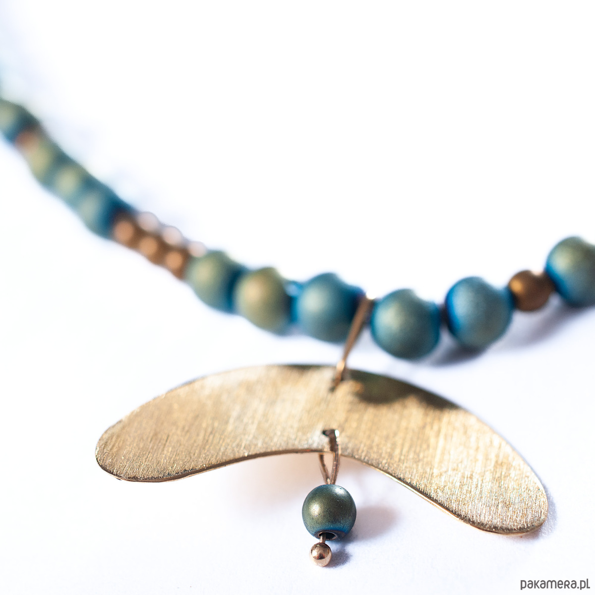 Naszyjnik z agatem, hematytem i mosiądzem.[SN18]